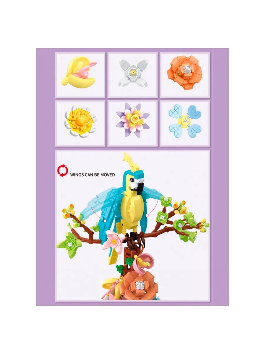 Купить Конструктор "Попугай в цветах", 1162 деталей