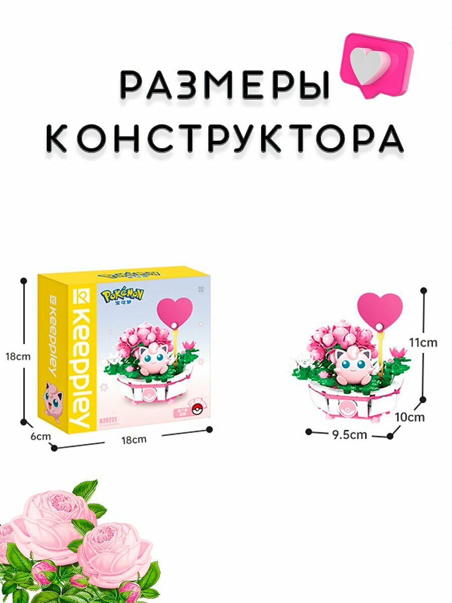 Конструктор из мини блоков - цветок с покемоном Джигглипафф интересное: