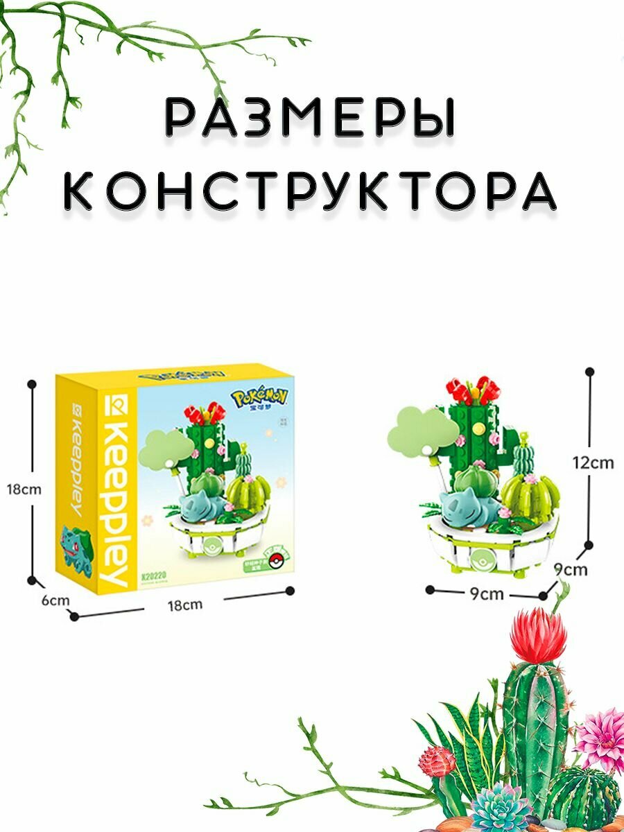 Конструктор из мини блоков - цветок с покемоном Бульбазавр интересное: