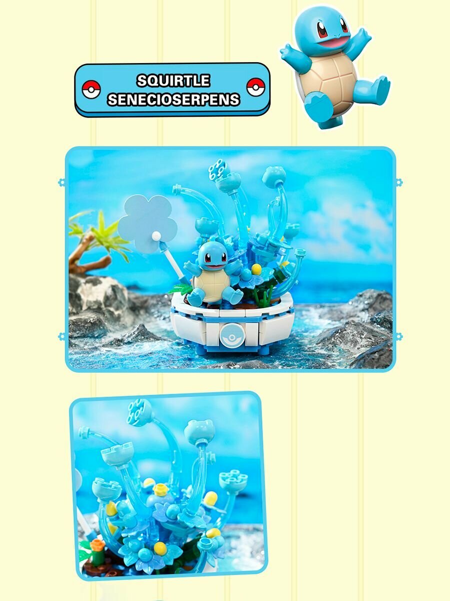 Купить Конструктор из мини блоков - цветок с покемоном Сквиртл