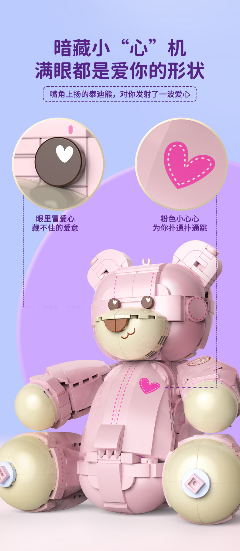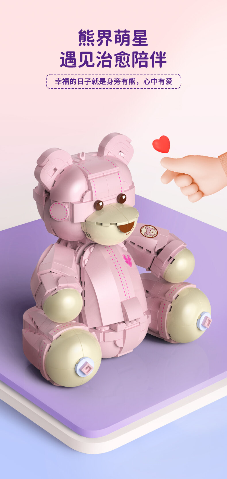 Купить Конструктор 3Д JAKI Большой розовый плюшевый мишка, подвижные элементы, 733 деталей - JK8133