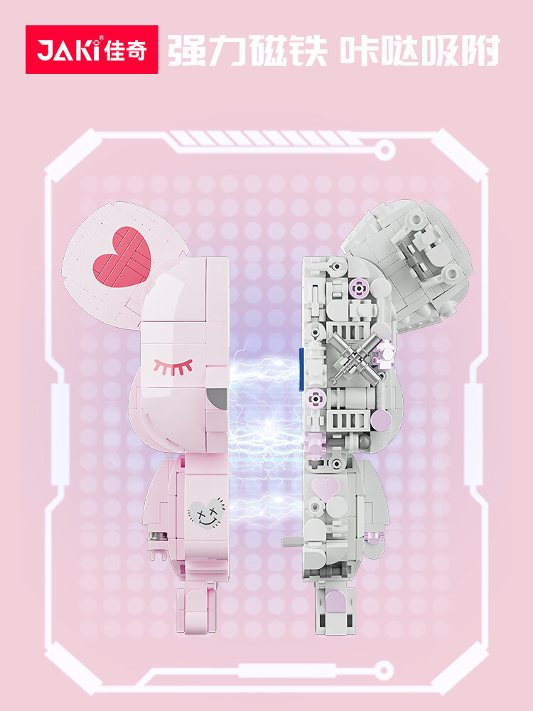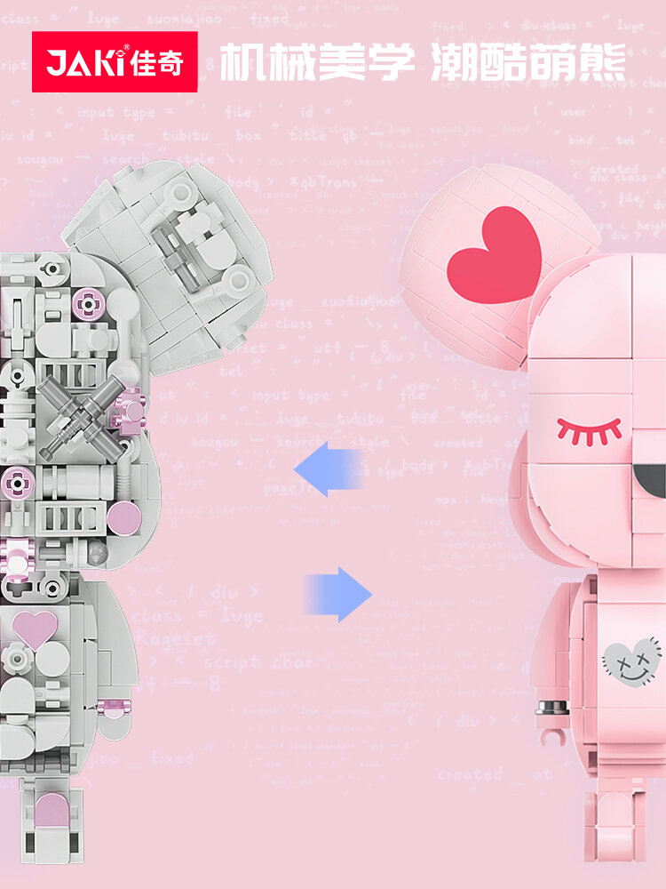 Конструктор 3Д JAKI Большой розовый плюшевый мишка, подвижные элементы, 733 деталей - JK8133