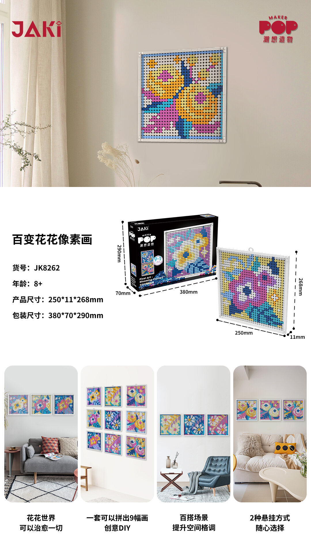 Купить Конструктор JAKI пиксельная мозаика Космос и котики 9в1, картина, 2221 деталей - JK8261