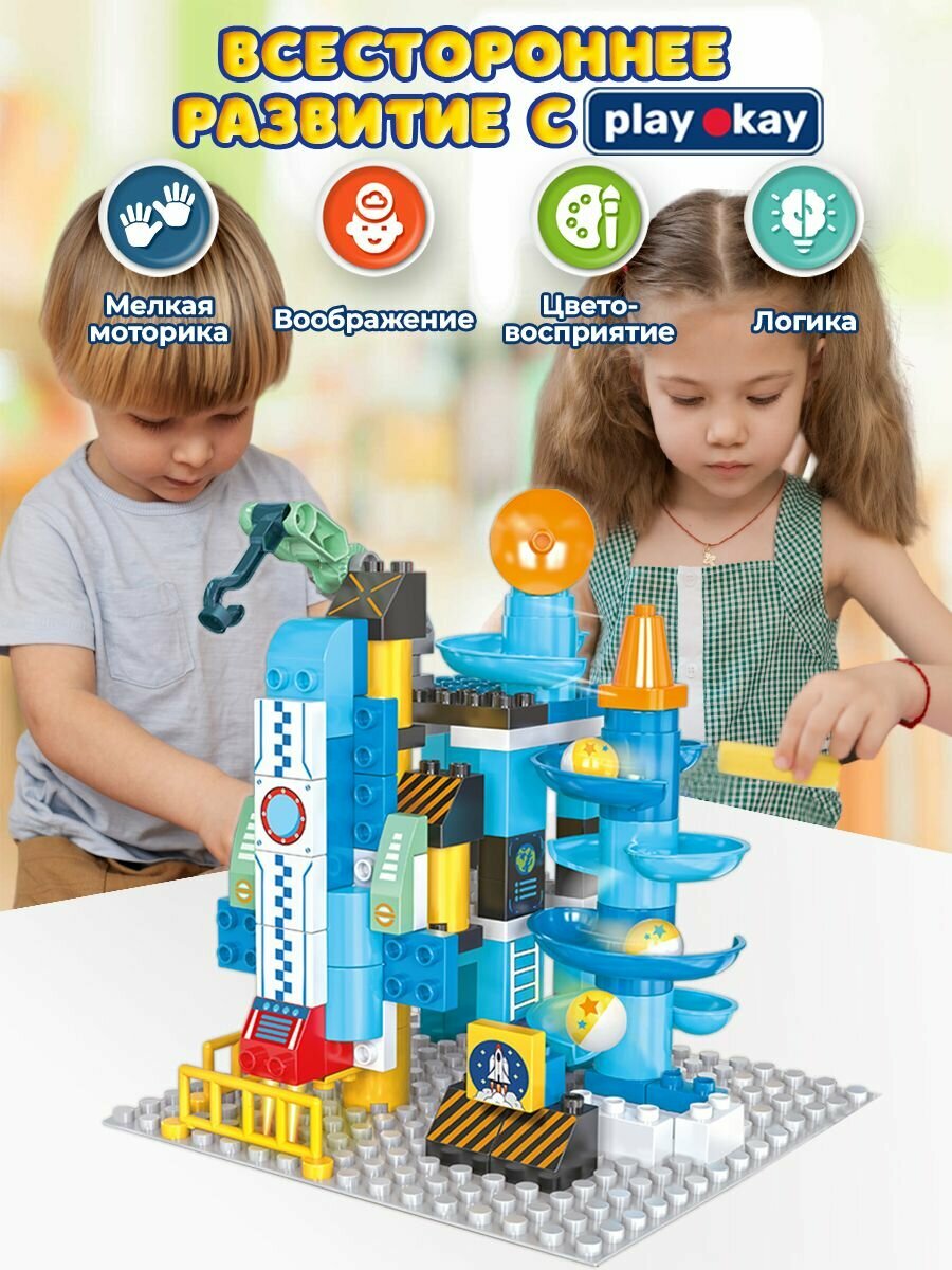 Конструктор для мальчика и девочки Play Okay 122 элемента, легко собирается, столик, цветные детали, совместимость конструктора с Lego Duplo