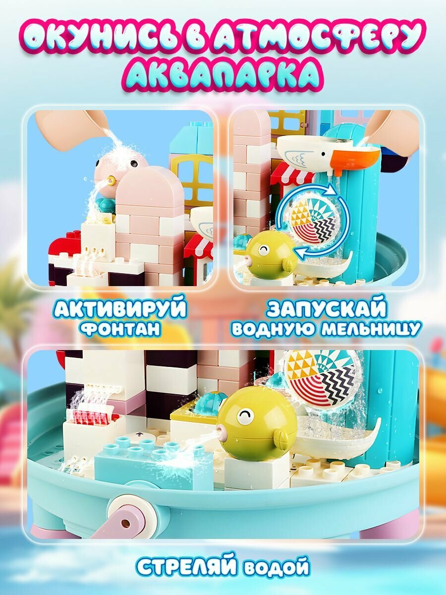 Стол детский игровой развивающий Play Okay с конструктором для ребенка, трансформер, пластиковый 6 в 1, для рисования, игр с водой и песком, контейнер для хранения игрушек - 11 деталей в наборе