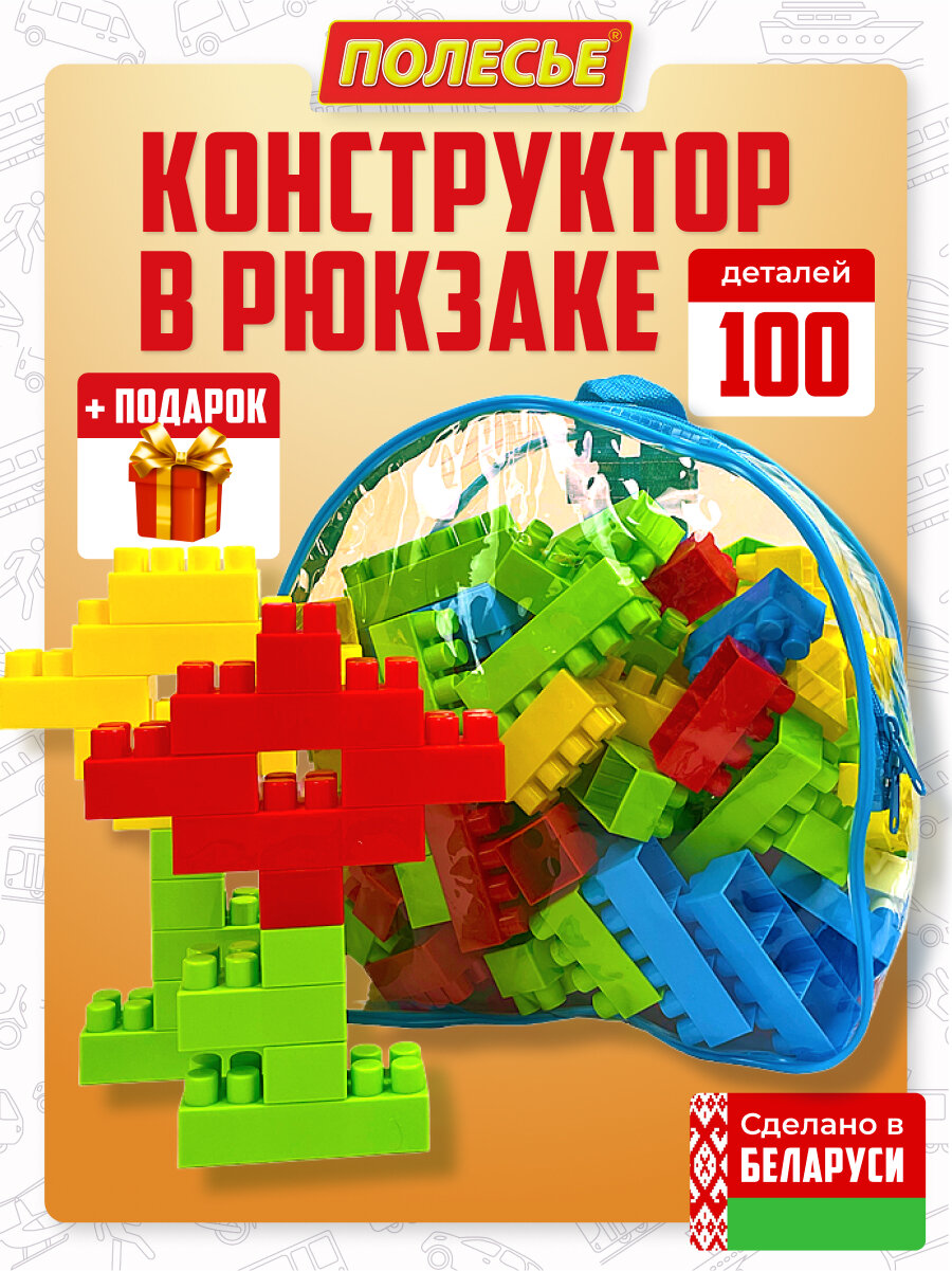 Конструктор "Гигант" Полесье развивающий для детей 100 деталей в синем рюкзаке интересное:
