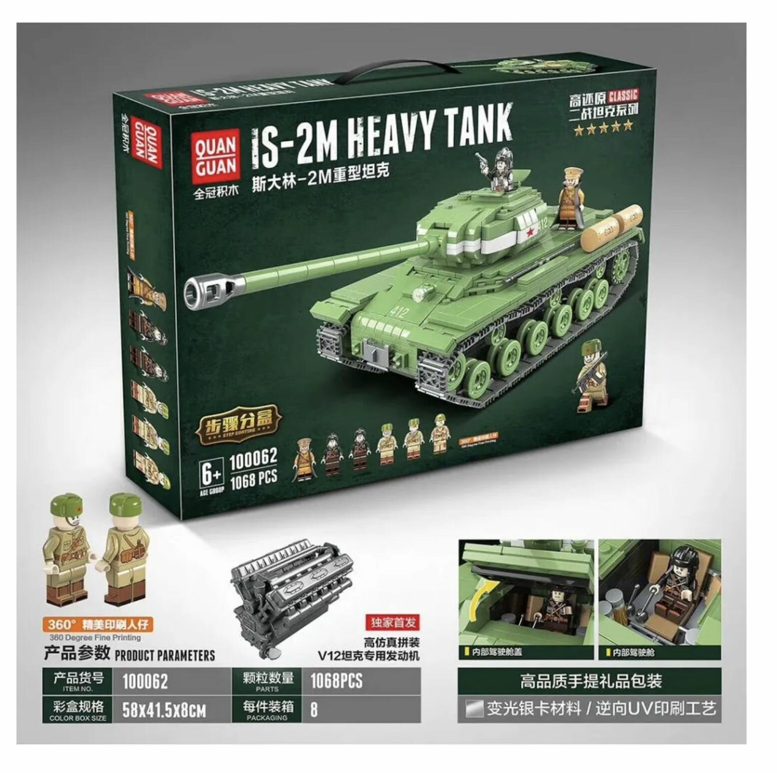 СохранитьКонструктор 100062 Quanguan Танк ИС-2 1068 деталей интересное: