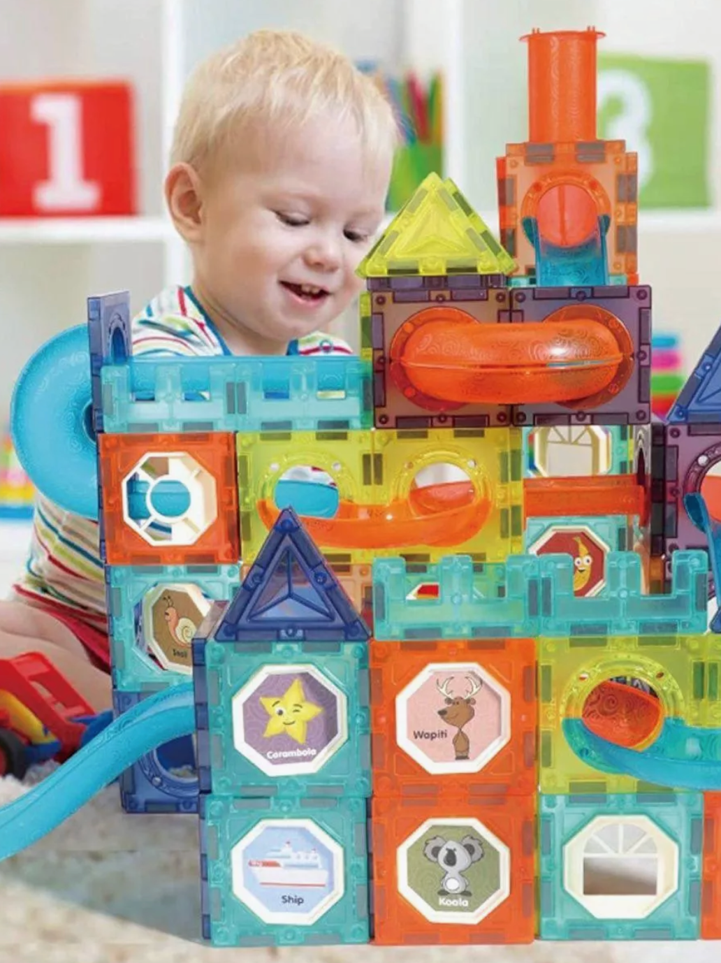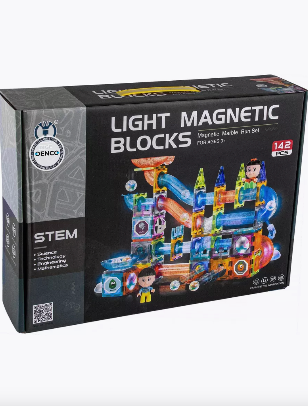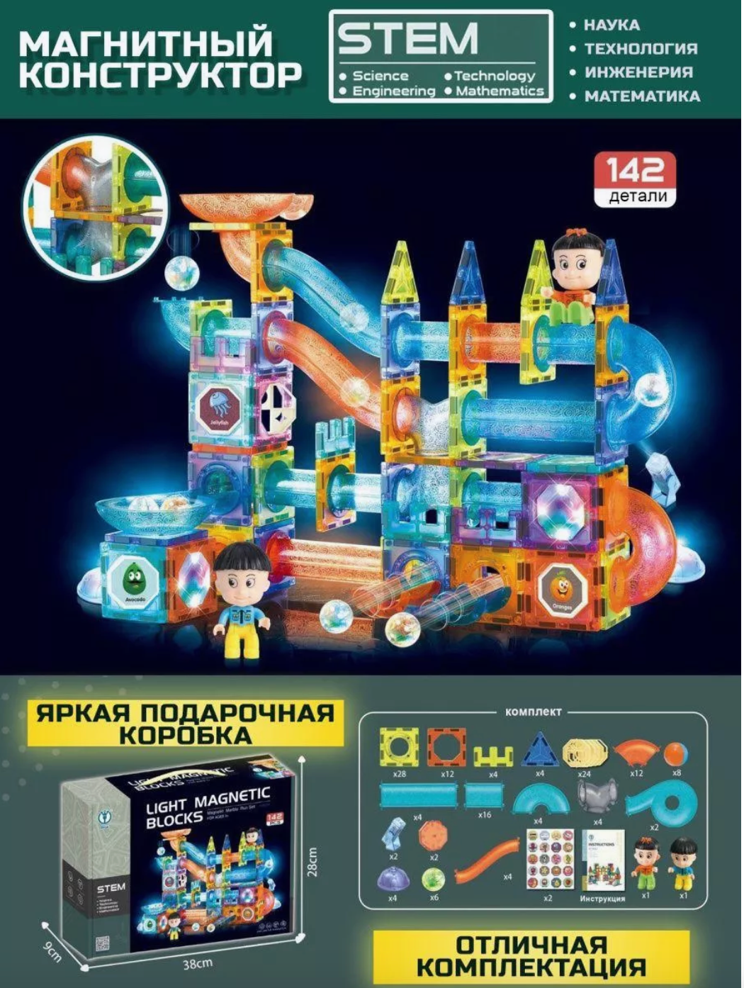 Купить "Конструктор магнитный Аттракцион" - 142 магнитных детали со световыми эффектами