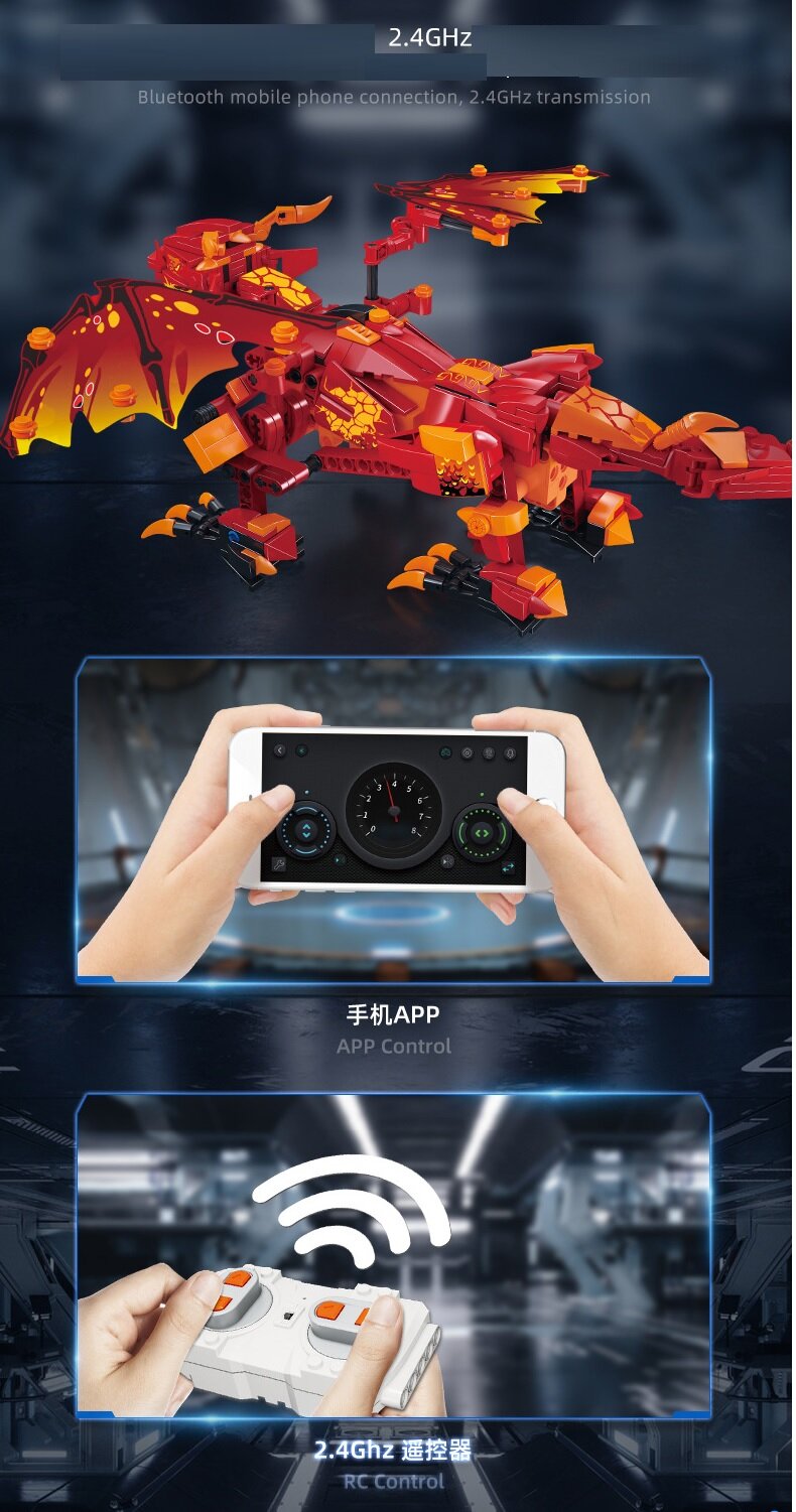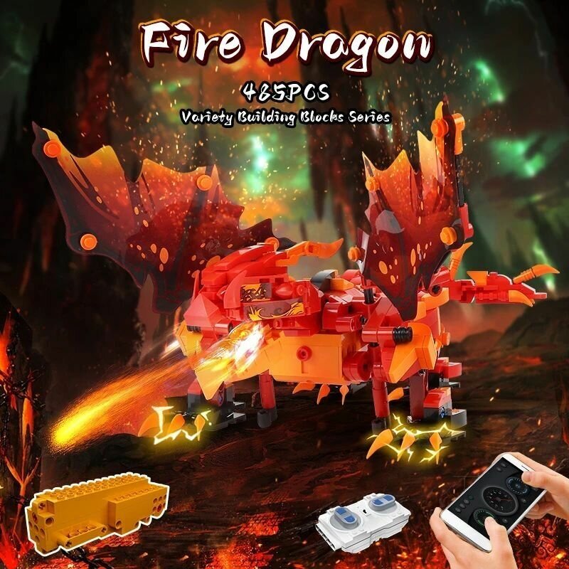 Купить Конструктор на управлении с телефона и пульта огненный дракон 485 деталей (13148)