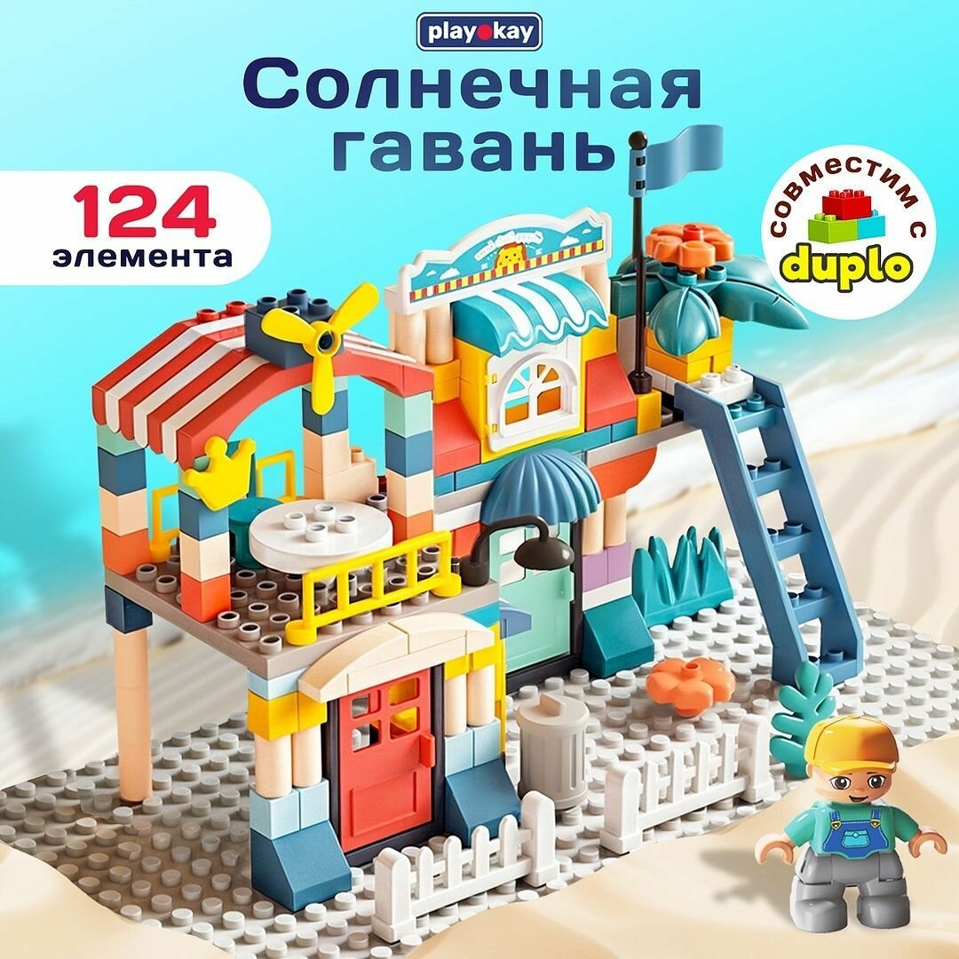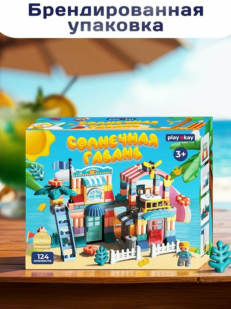 Купить Конструктор для мальчика и девочки PlayOkay 124 детали, развивающий, пляжное кафе, легко собирается