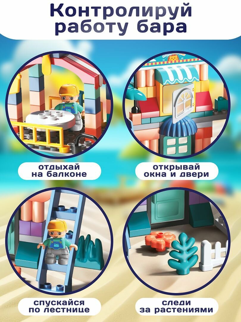 Конструктор для мальчика и девочки PlayOkay 124 детали, развивающий, пляжное кафе, легко собирается интересное: