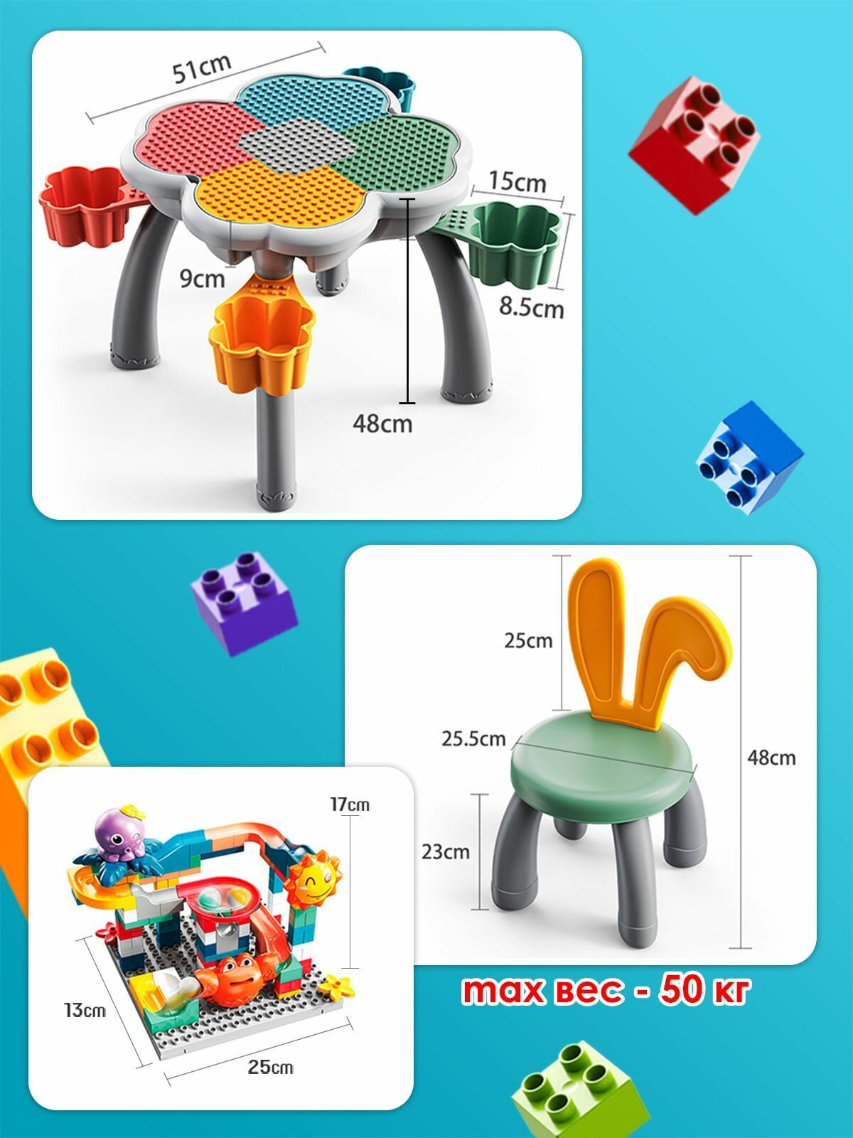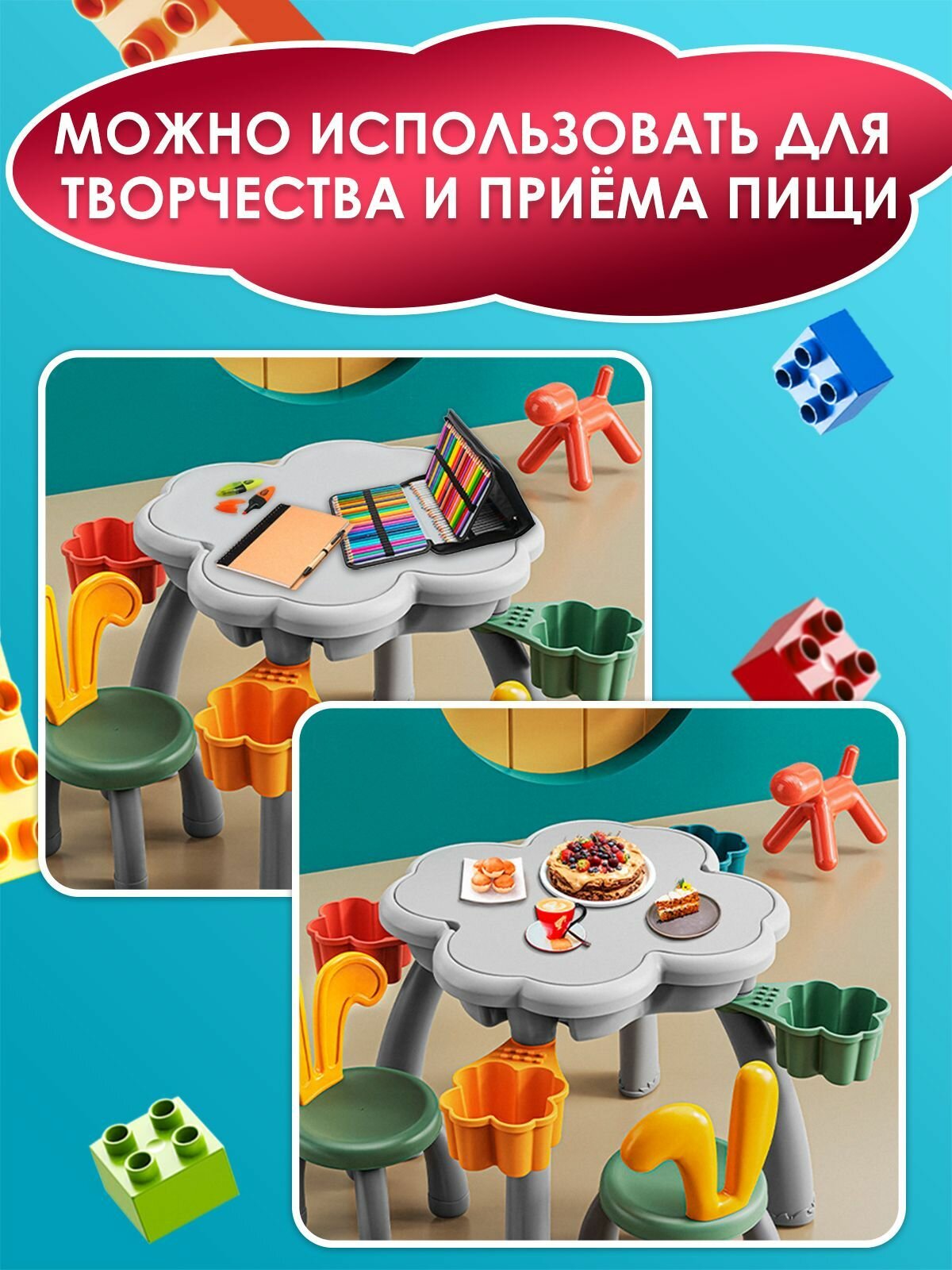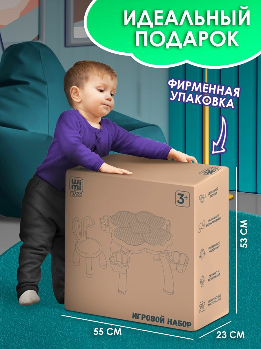 Стол для конструирования WiMi со стульчиком и конструктором, детская мебель для игр с водой и песком интересное:
