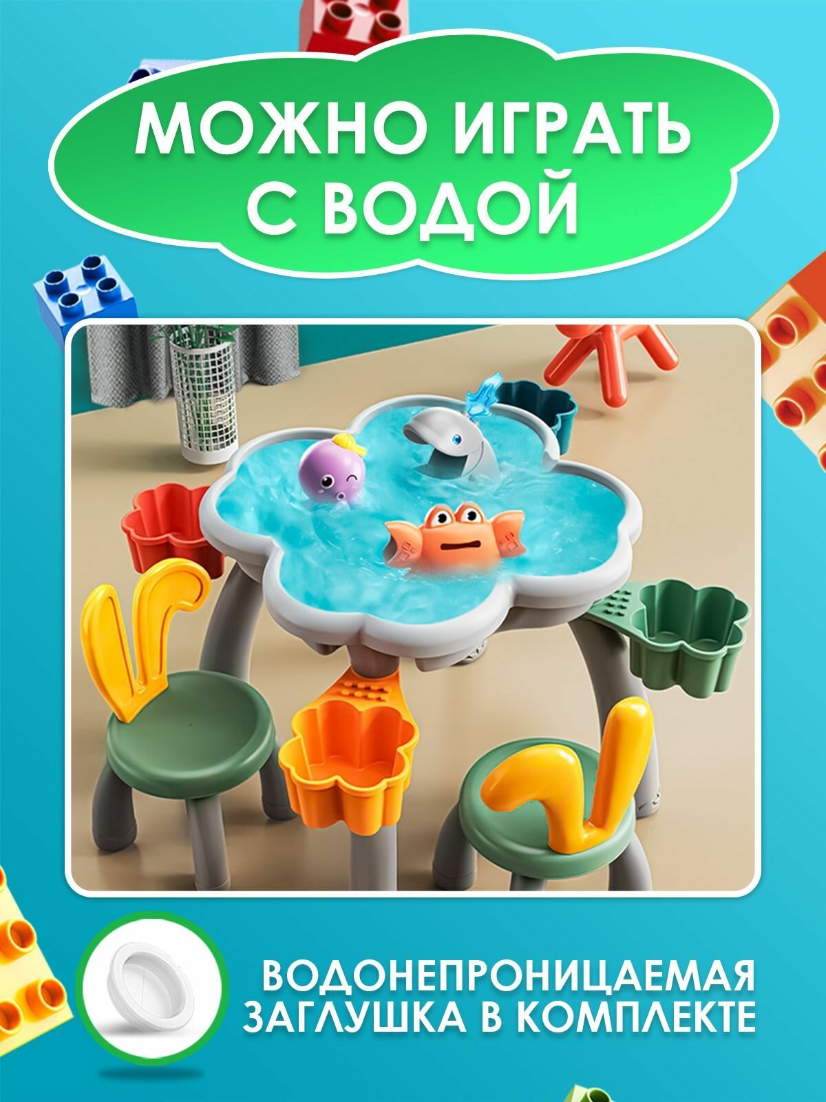 Купить Стол для конструирования WiMi со стульчиком и конструктором, детская мебель для игр с водой и песком