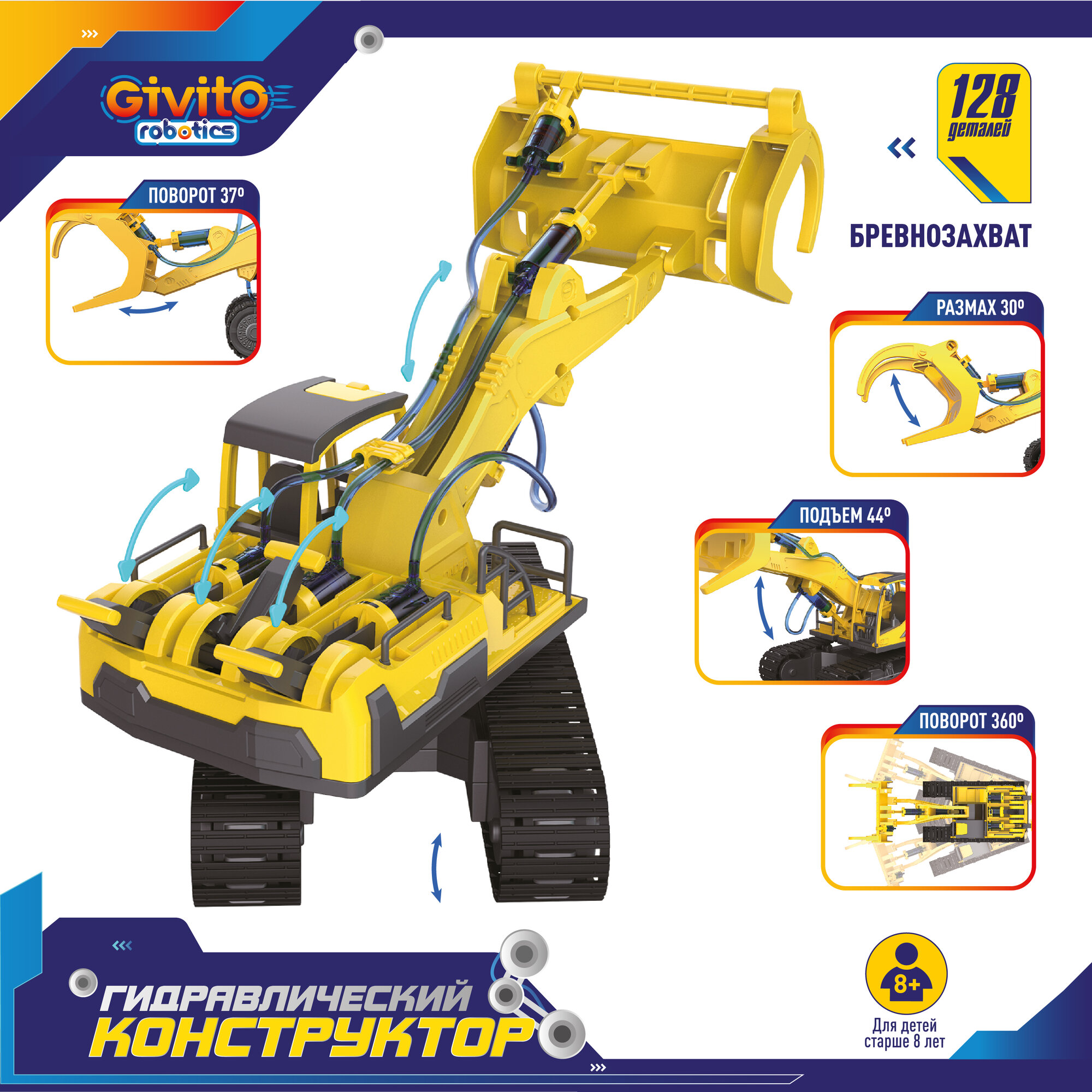 Игрушка-конструктор Givito 5в1 "Гидравлический робот -рука", 220 деталей (грейфер, захват, присоска) G2411-488