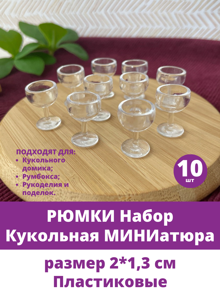 Купить Посуда для кукол, кукольного домика, Рюмка, пластиковая, мини размер 2 см, набор 10 шт.