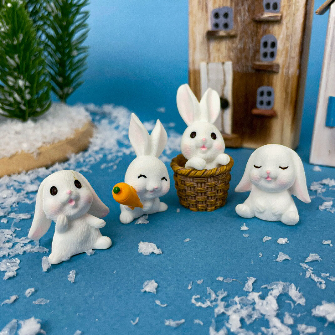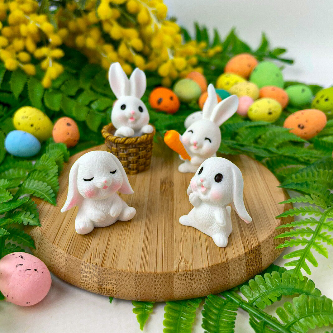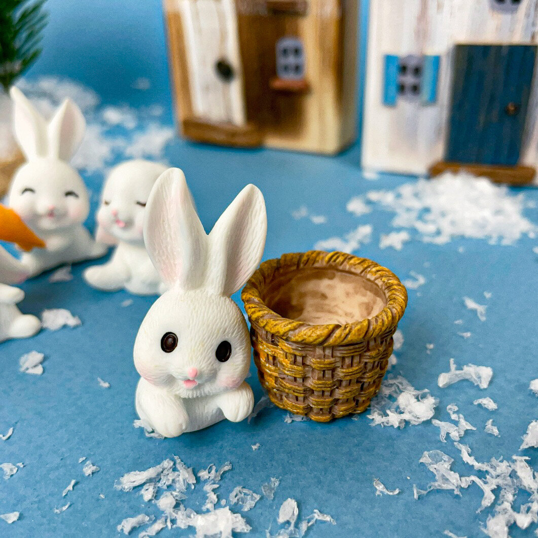 Купить Фигурки животных, Кролики, Зайчики декоративные, с корзинкой, кукольная миниатюра, набор 5 предметов.