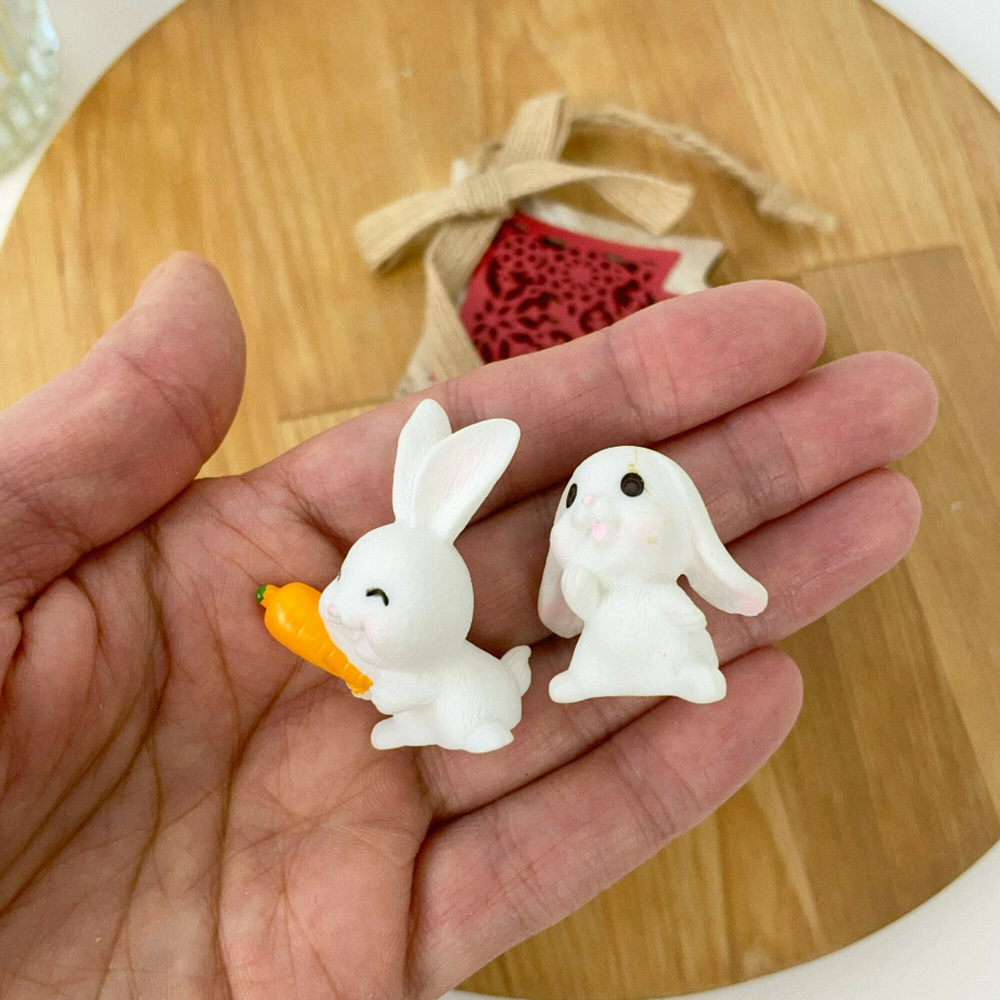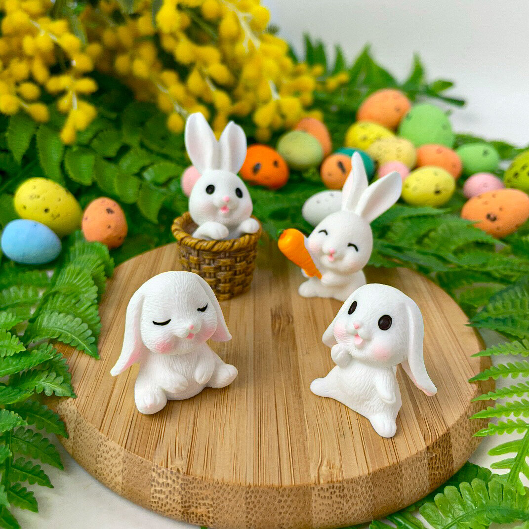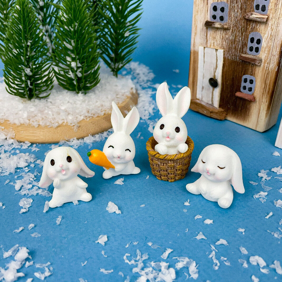 Купить Фигурки животных, Кролики, Зайчики декоративные, с корзинкой, кукольная миниатюра, набор 5 предметов.