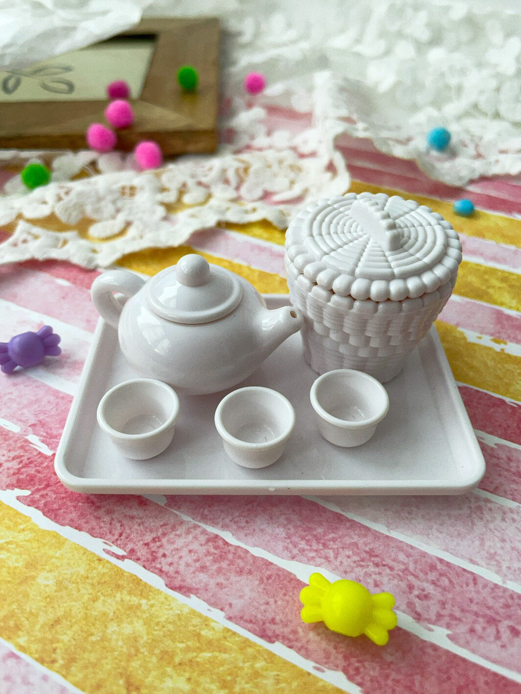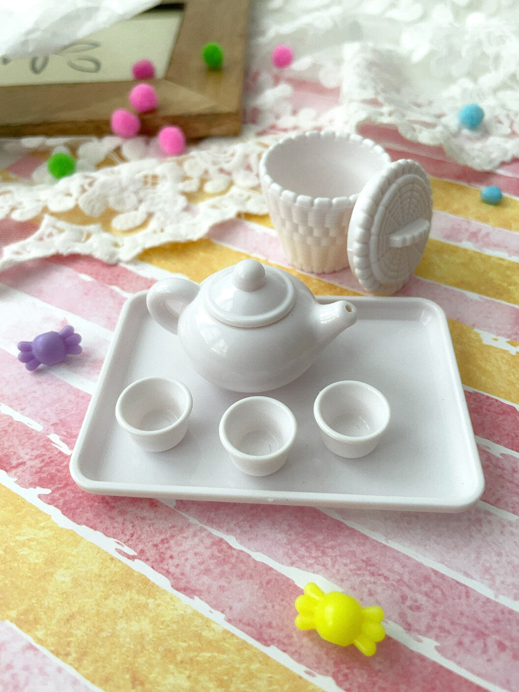 Купить Посуда для кукол, кукольного домика, пластиковая, мини размер 1 - 8 см, набор 6 шт.
