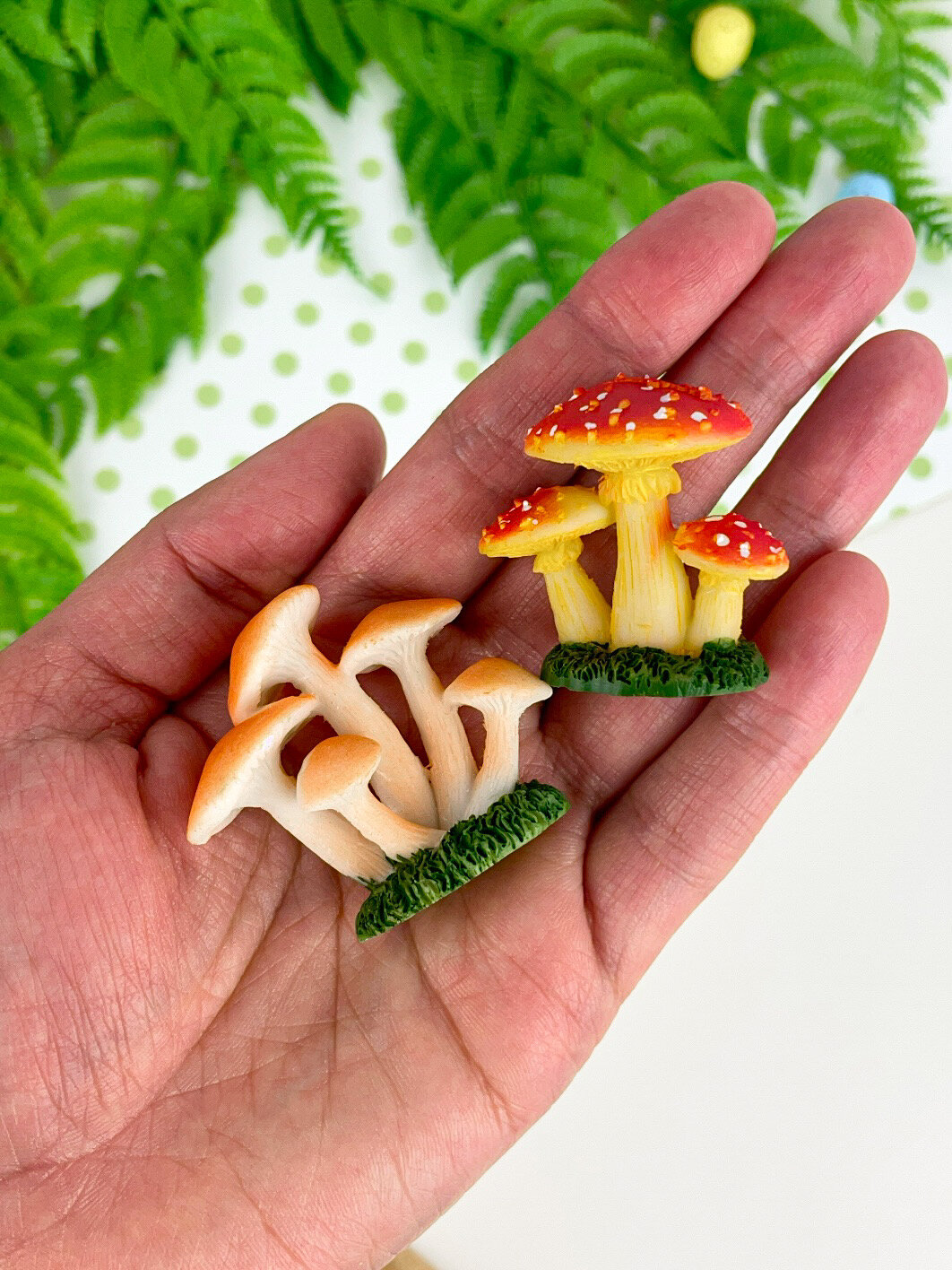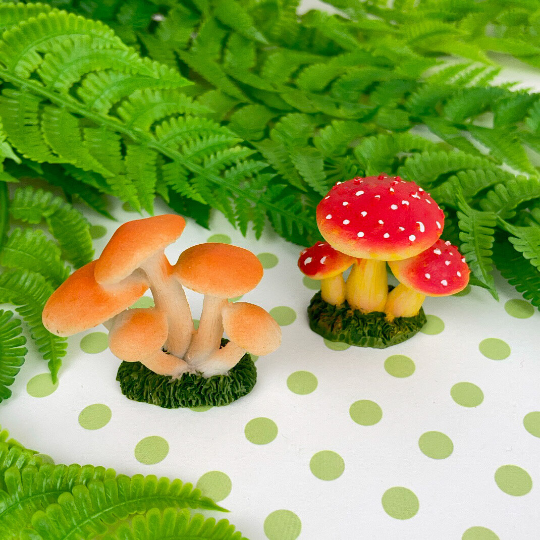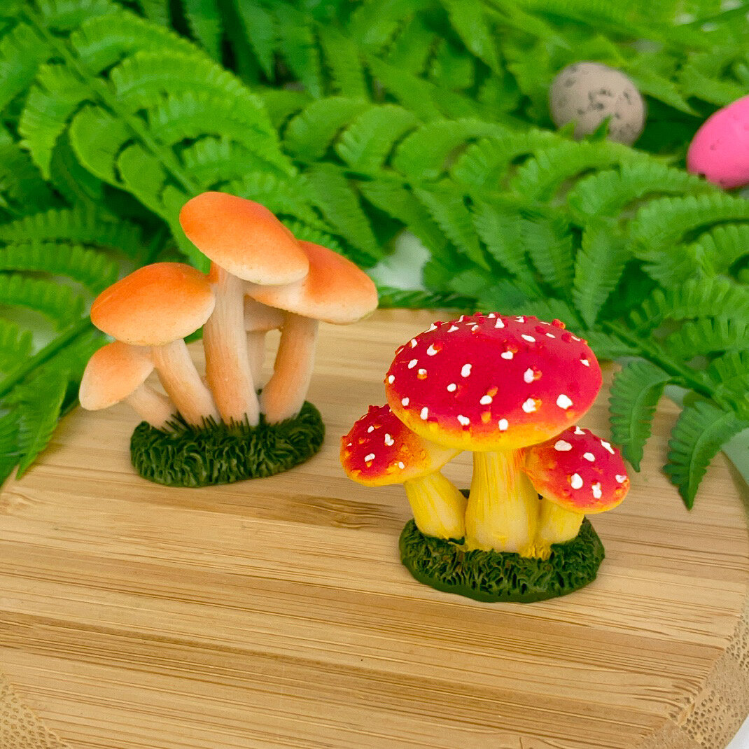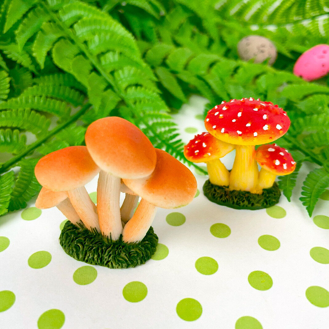 Купить Фигурки для декора, грибы декоративные, опята и мухоморы, кукольная миниатюра, набор 2 шт.