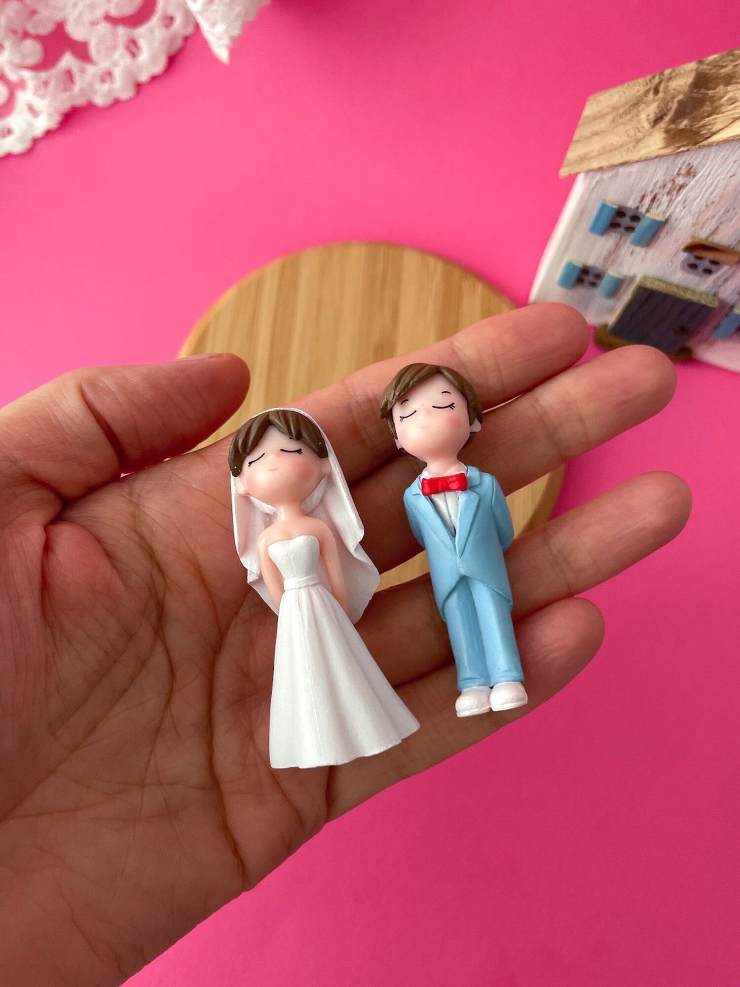 Купить Фигурки Жених и Невеста, свадебные, для декора, на торт, кукольная миниатюра, набор 2шт (1 пара)