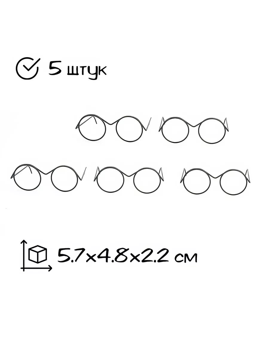 | Комплектация | Очки для игрушек черные круглые металлические - 3х2,5 см, 5 шт. |
