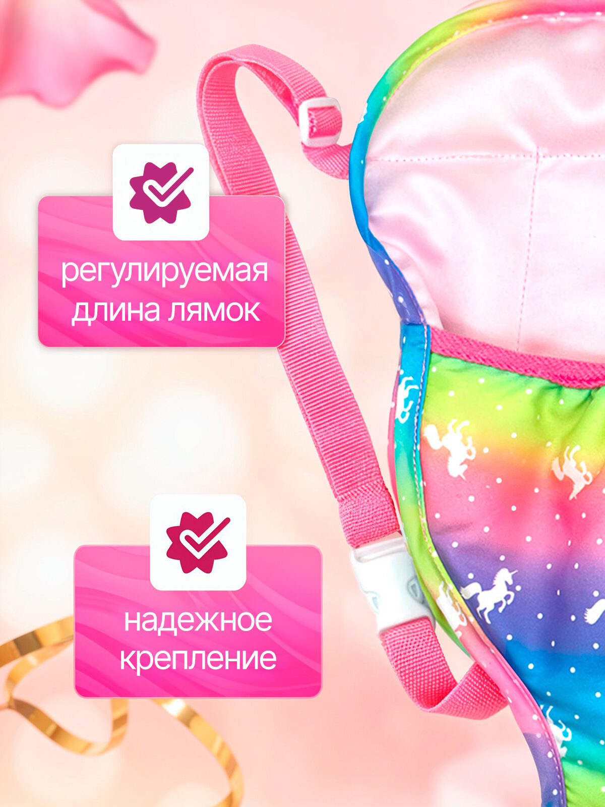 Рюкзачок-слинг для куклы SHARKTOYS "Единорог", текстильный, разноцветный, от 3 лет интересное: