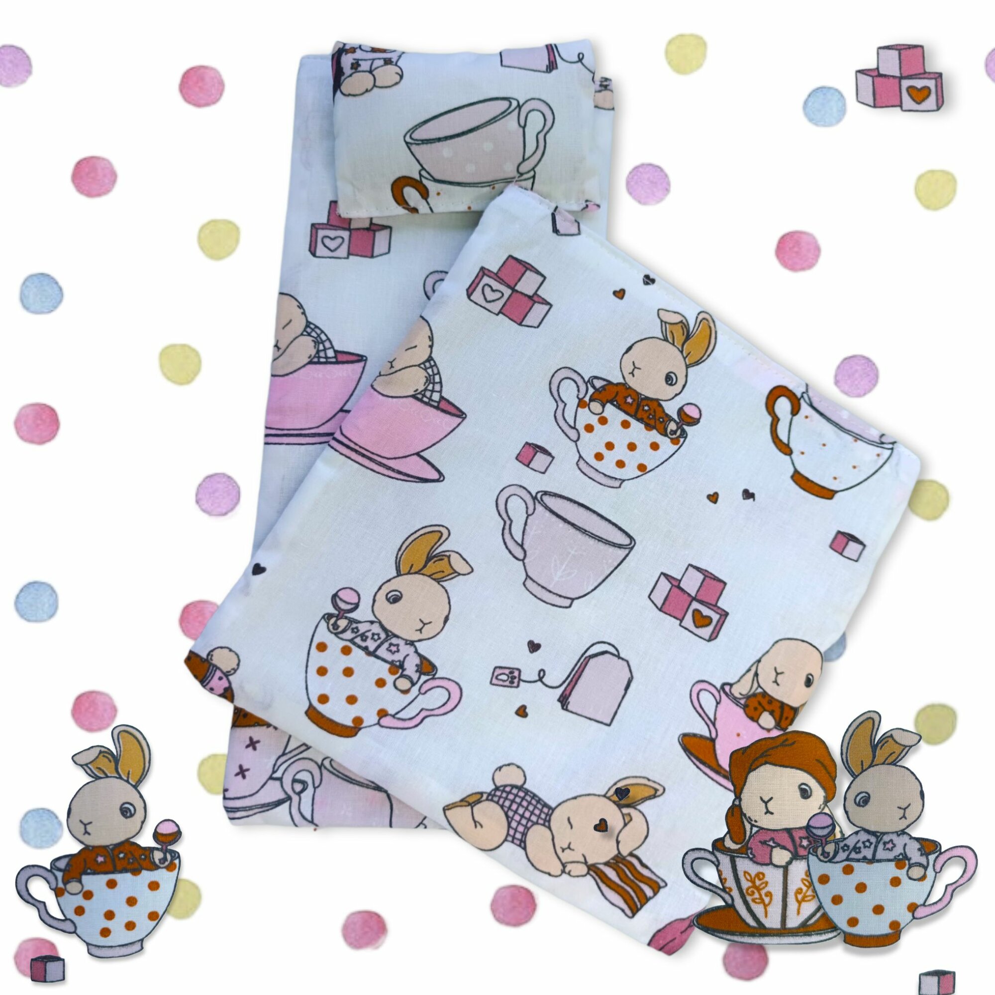 СохранитьДва комплекта постельного белья для кукол, Барби, коляски, кукольной кроватки, 30 см, Чашечки интересное: