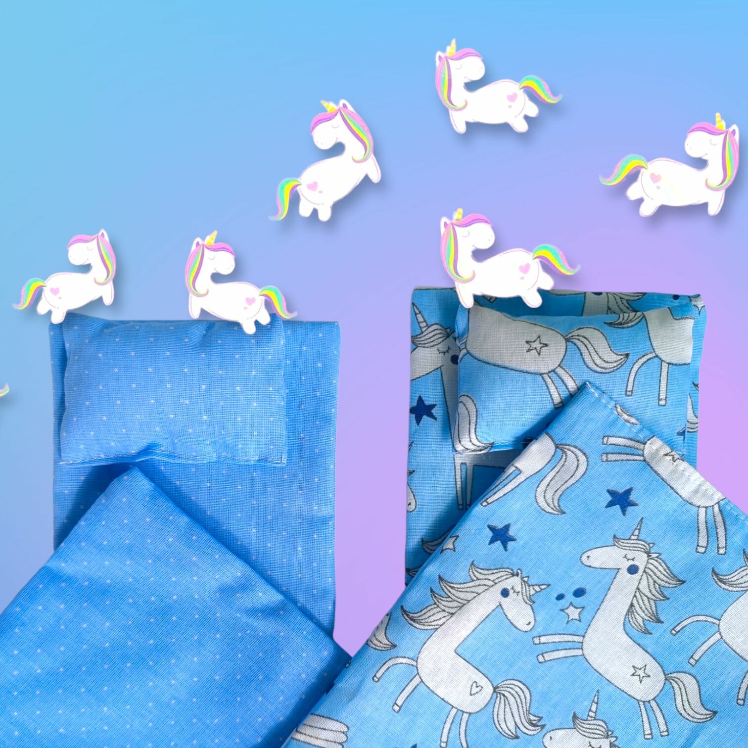 Купить Два комплекта постельного белья для кукол, Барби, коляски, кукольной кроватки, 30 см, Единорожки в горошке