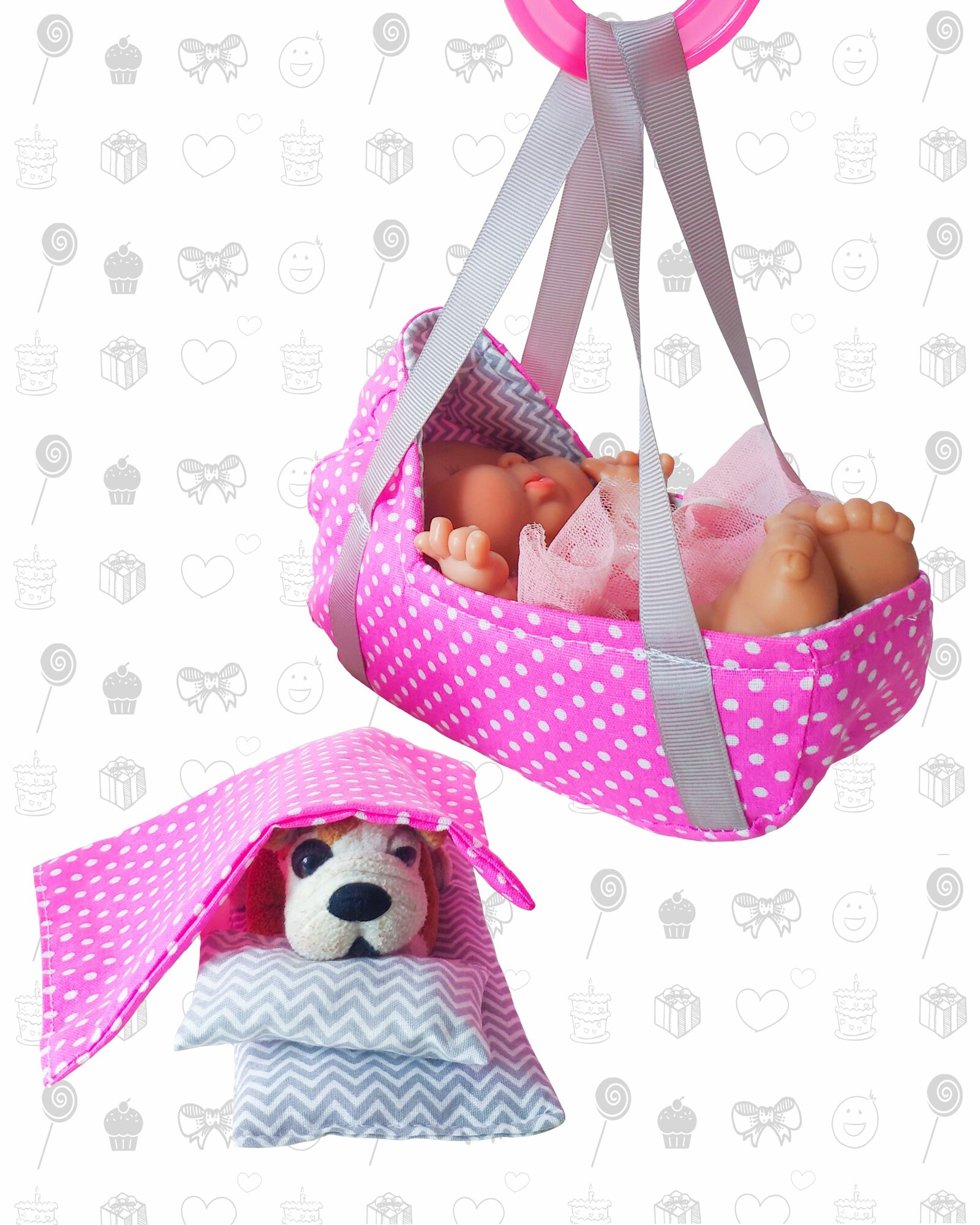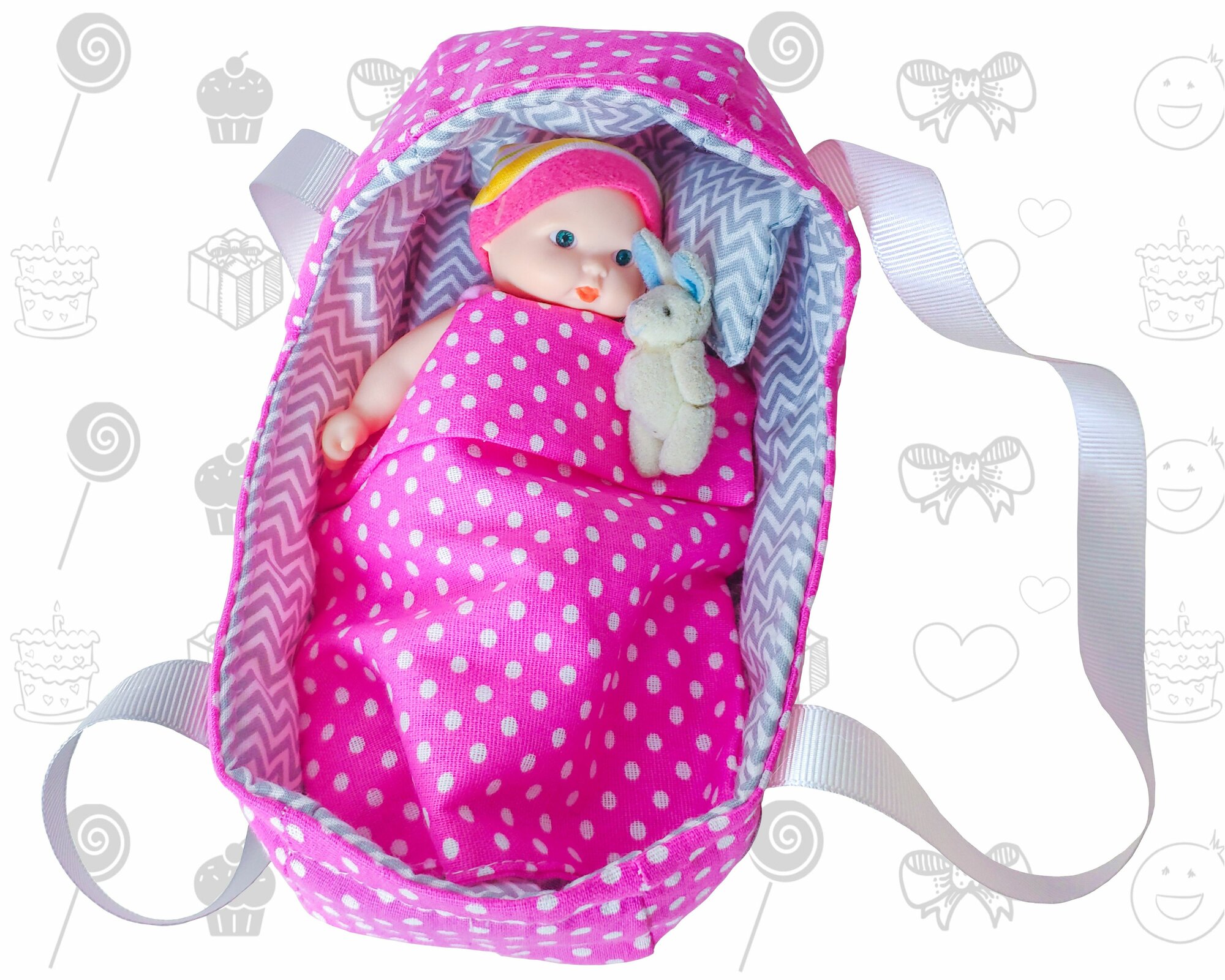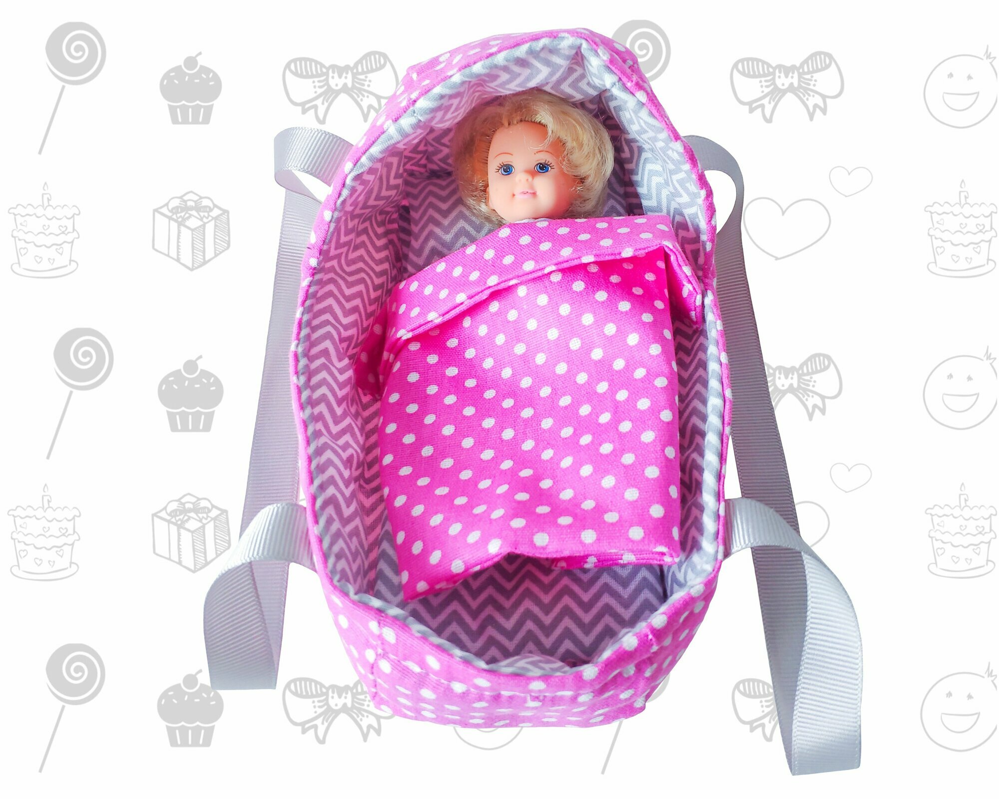 Сумка, люлька переноска для маленьких кукол и игрушек до 18 см, Ягодка
