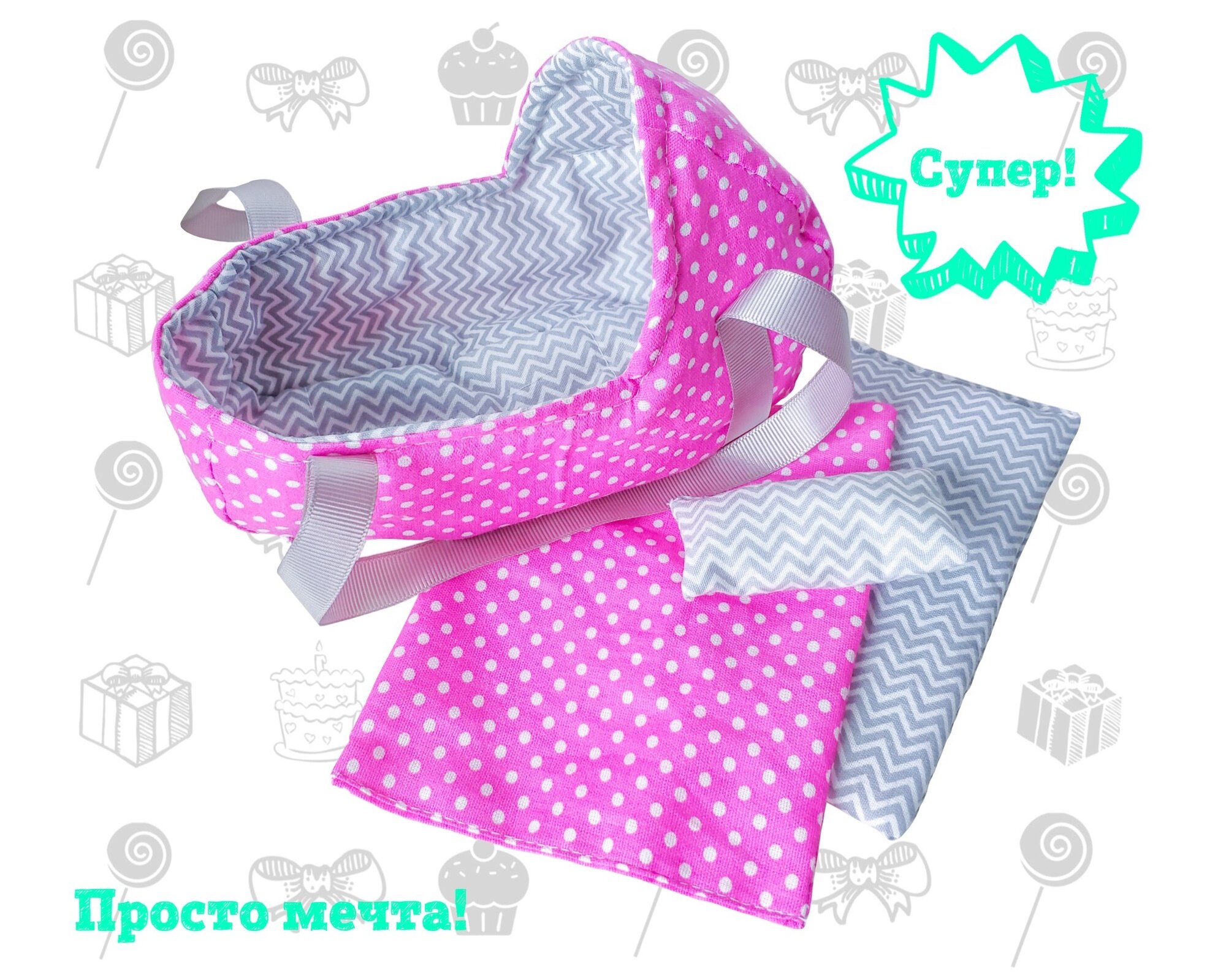 Сумка, люлька переноска для маленьких кукол и игрушек до 18 см, Фуксия интересное:
