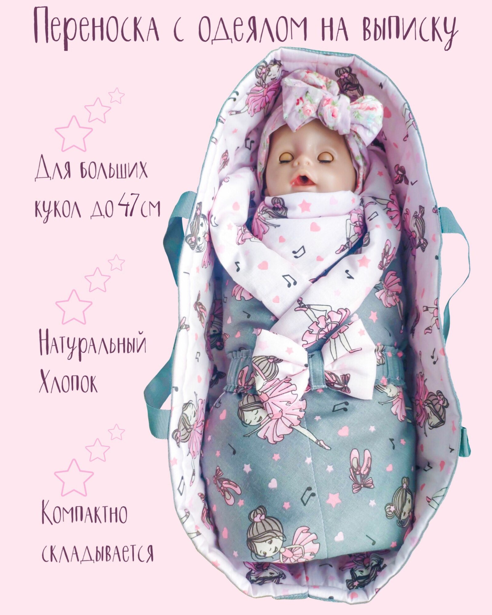 Аксессуары для куклы до 47 см "Переноска, одеяло с бантом Балеринки" интересное: