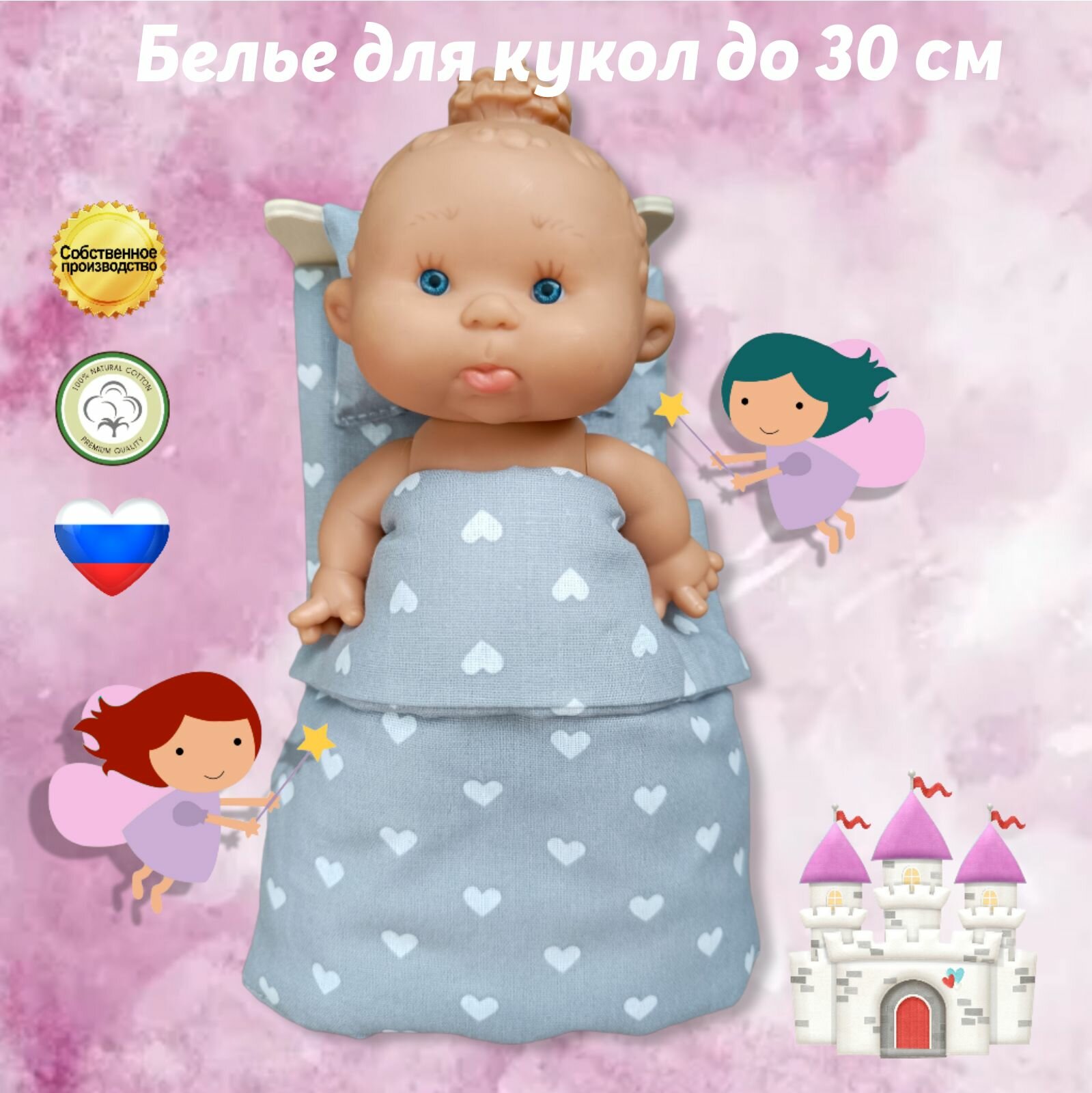 СохранитьКомплект белья для куклы до 30 см, Сердечки на сером интересное: