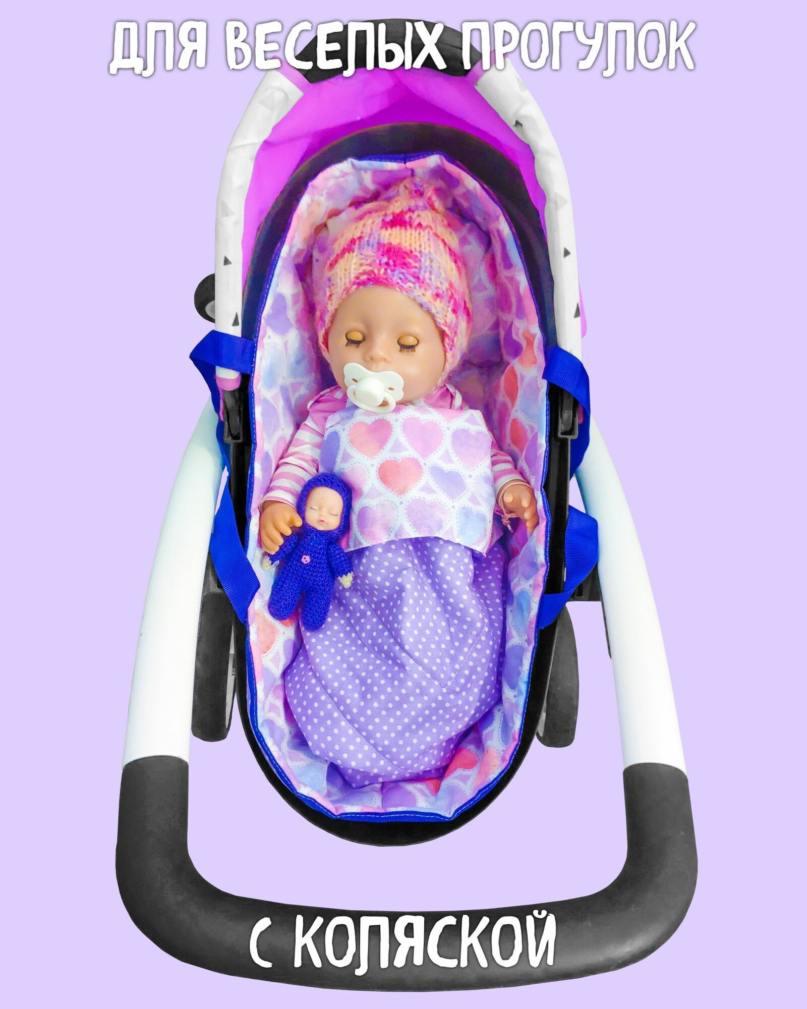 Переноска с кукольным бельем, аксессуары для больших кукол "Сиреневые сердца" интересное: