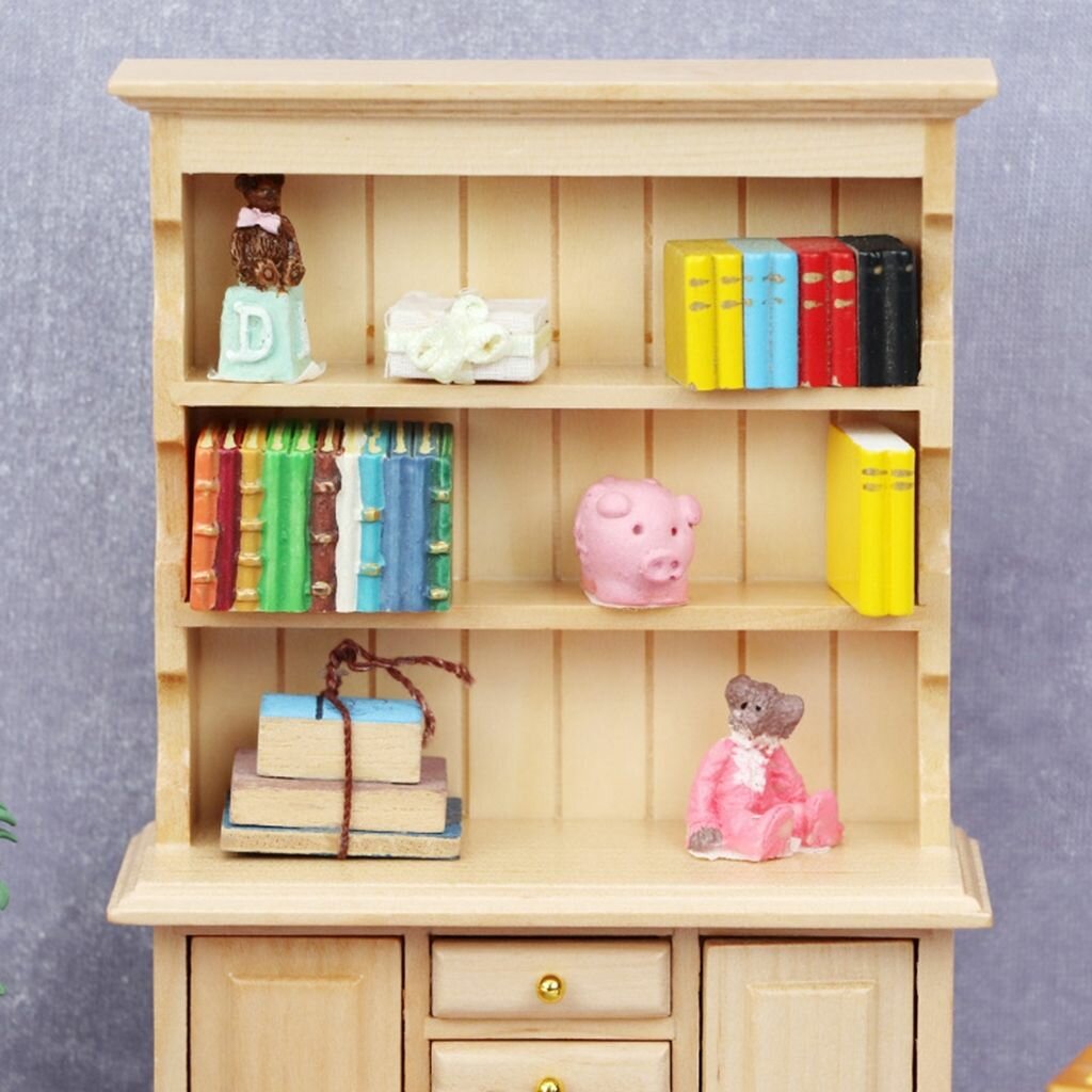 Купить Миниатюрный деревянный книжный шкаф 1:12 для кукол