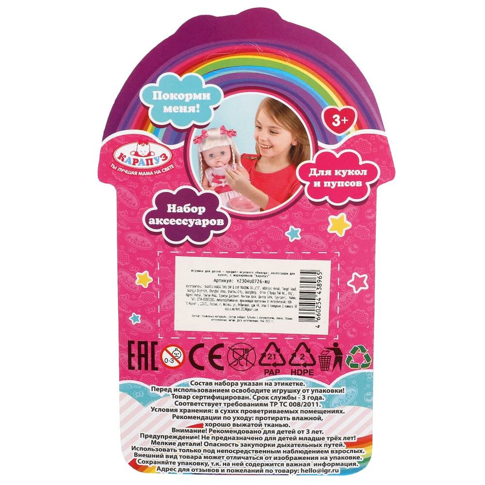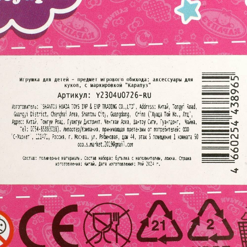 Набор аксессуаров, 2 предмета: бутылочка с наполнителем, ложка Карапуз Y2304U0726-RU интересное: