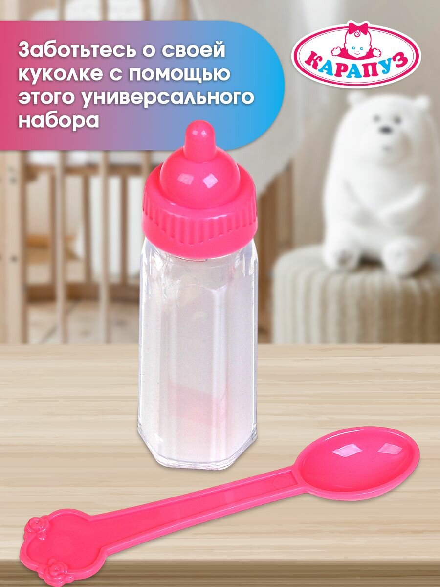 Аксессуары для кукол и пупсов Карапуз 2 предмета: бутылочка и ложка интересное: