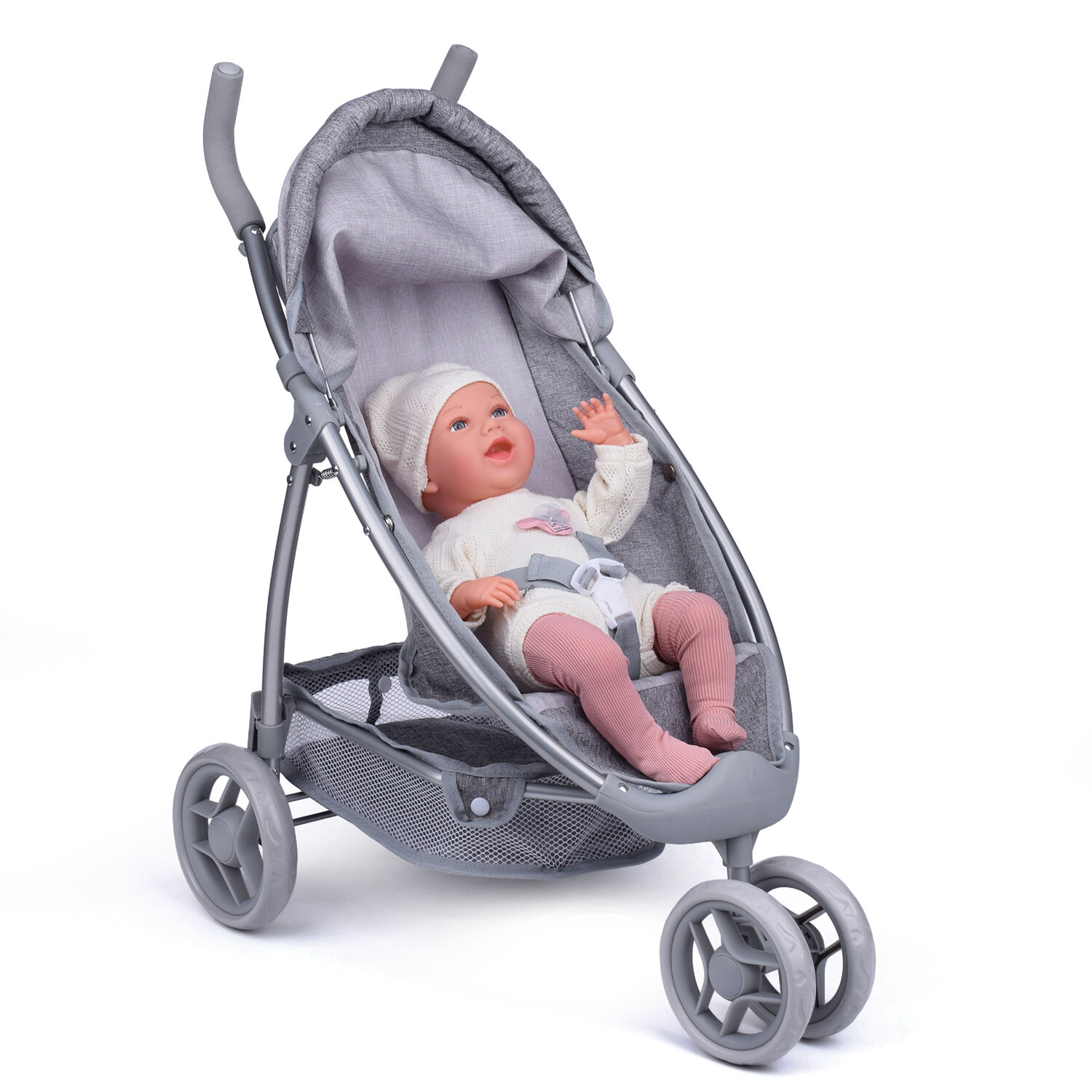 Купить Коляска для кукол 9665 металлическая, складная, прогулочная, с тентом, с корзиной, серая