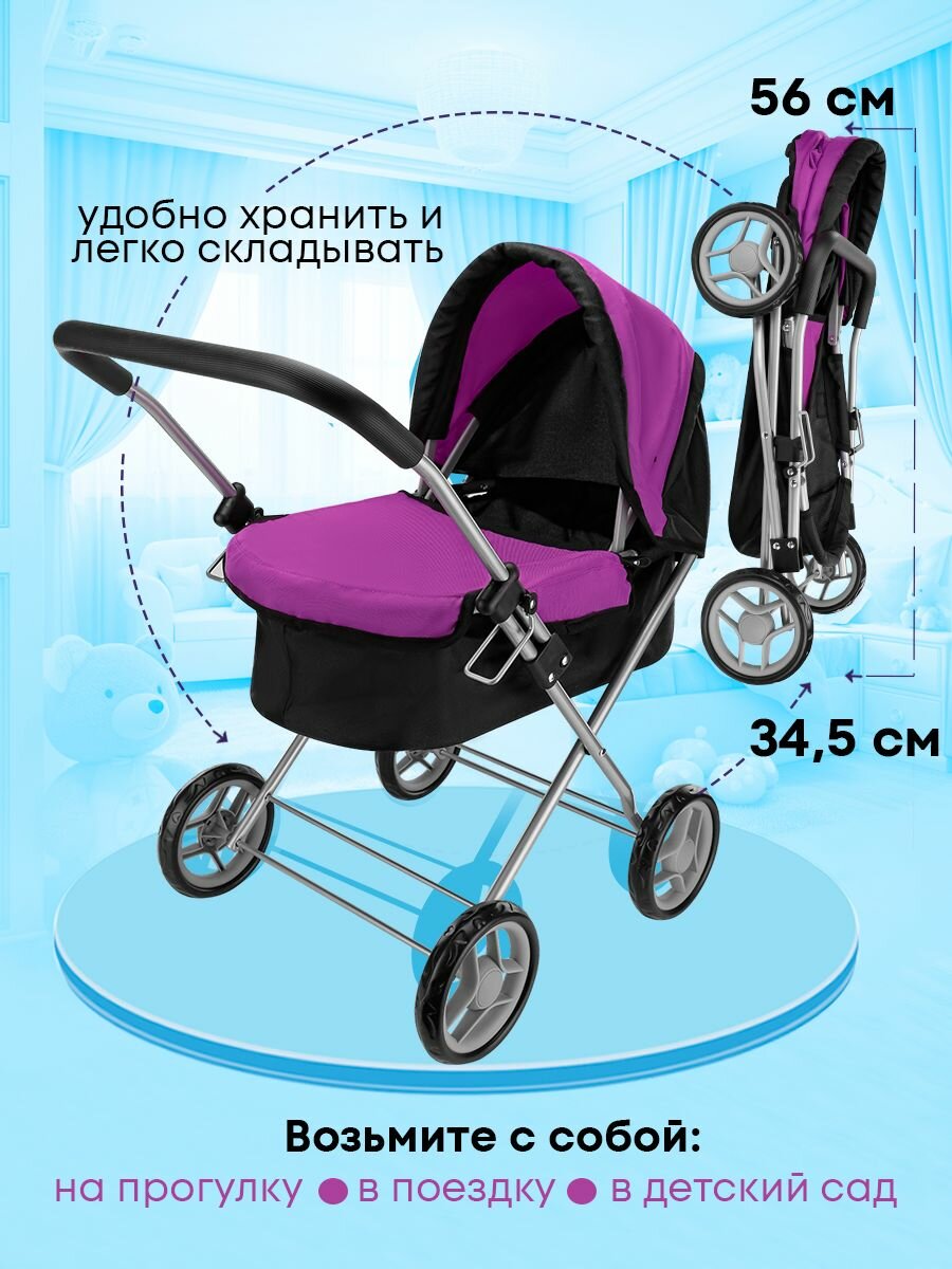 Прогулочная коляска для кукол до 48 см, детская, металлическая. Подарок для девочек 3+ Артикул 9619-B интересное: