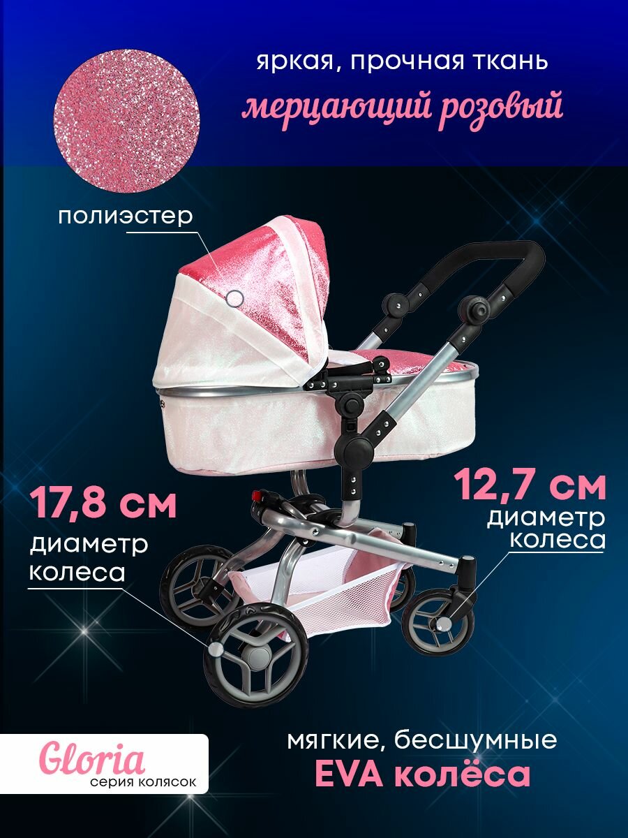 Коляска трансформер для кукол до 50 см. 3в1 размеры 69х42х80см. Подарок девочке 3+ серия глория 9695-GL интересное: