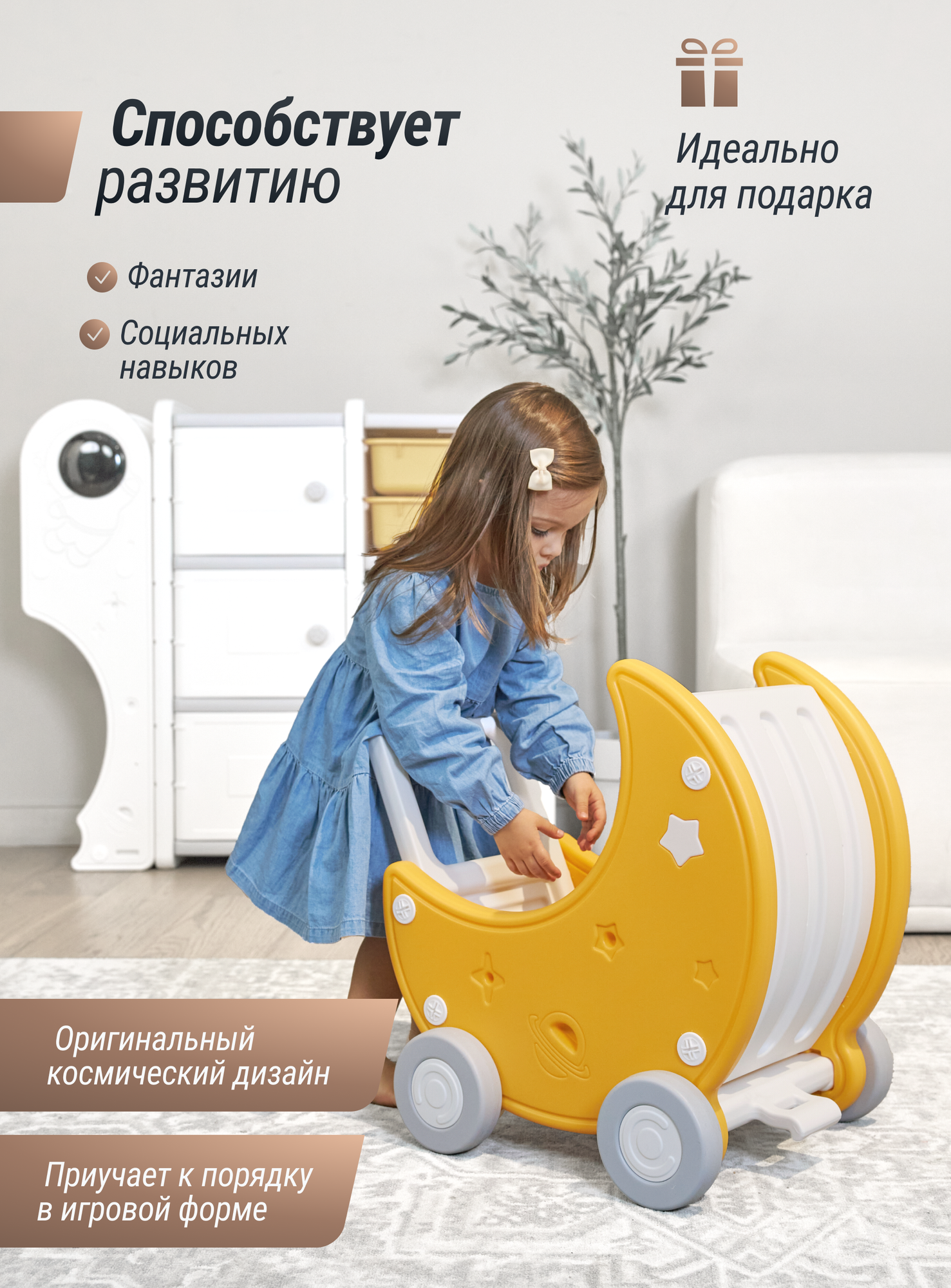 Коляска детская для кукол и игрушек UNIX Kids Moon, Лунная серия, пластиковая, 47х31х51 см интересное:
