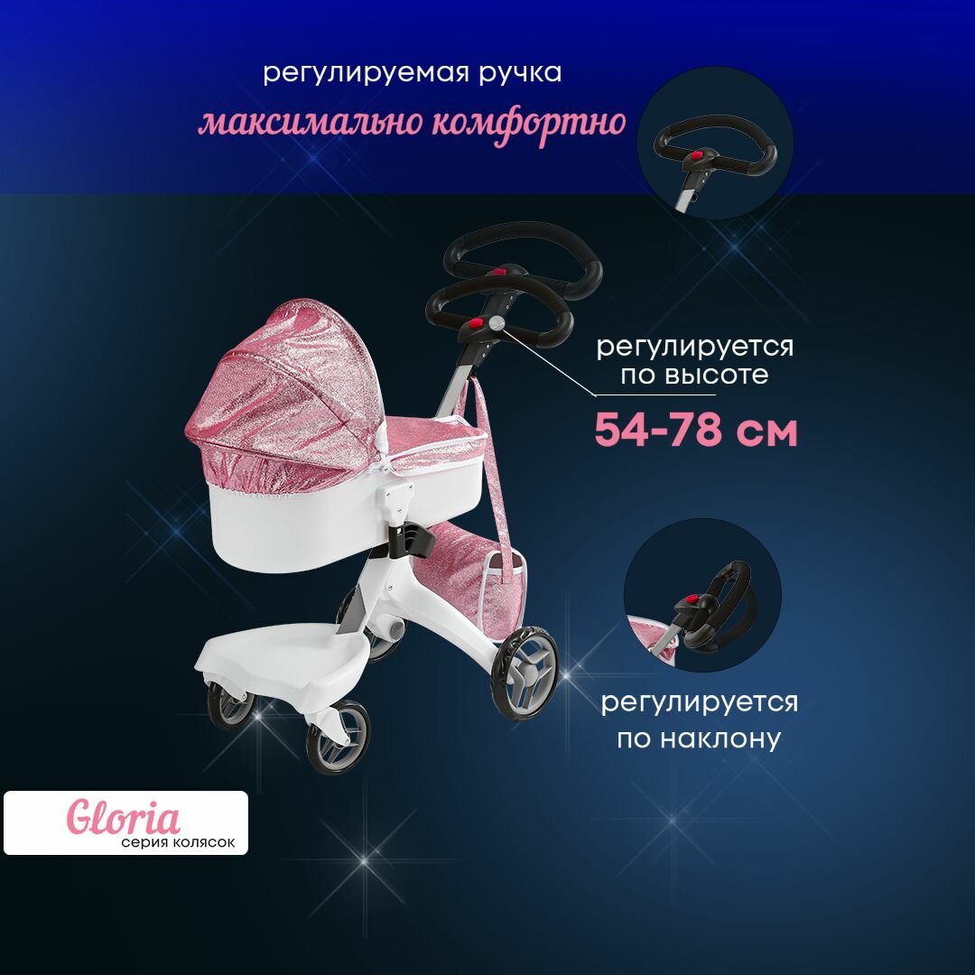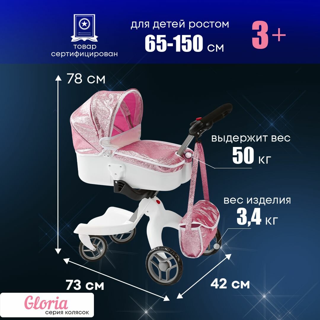 Игрушечная коляска с сумкой с люлькой 73х42х78см. Подарок для девочек 3+ серия глория Артикул 9631A-GL интересное: