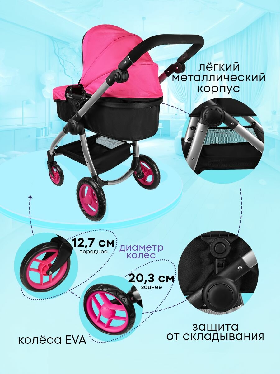 Коляска для кукол до 60 см металлическая с люлькой. Размер 80х40х79см. Подарок для девочек 3+ Артикул 9696-A интересное: