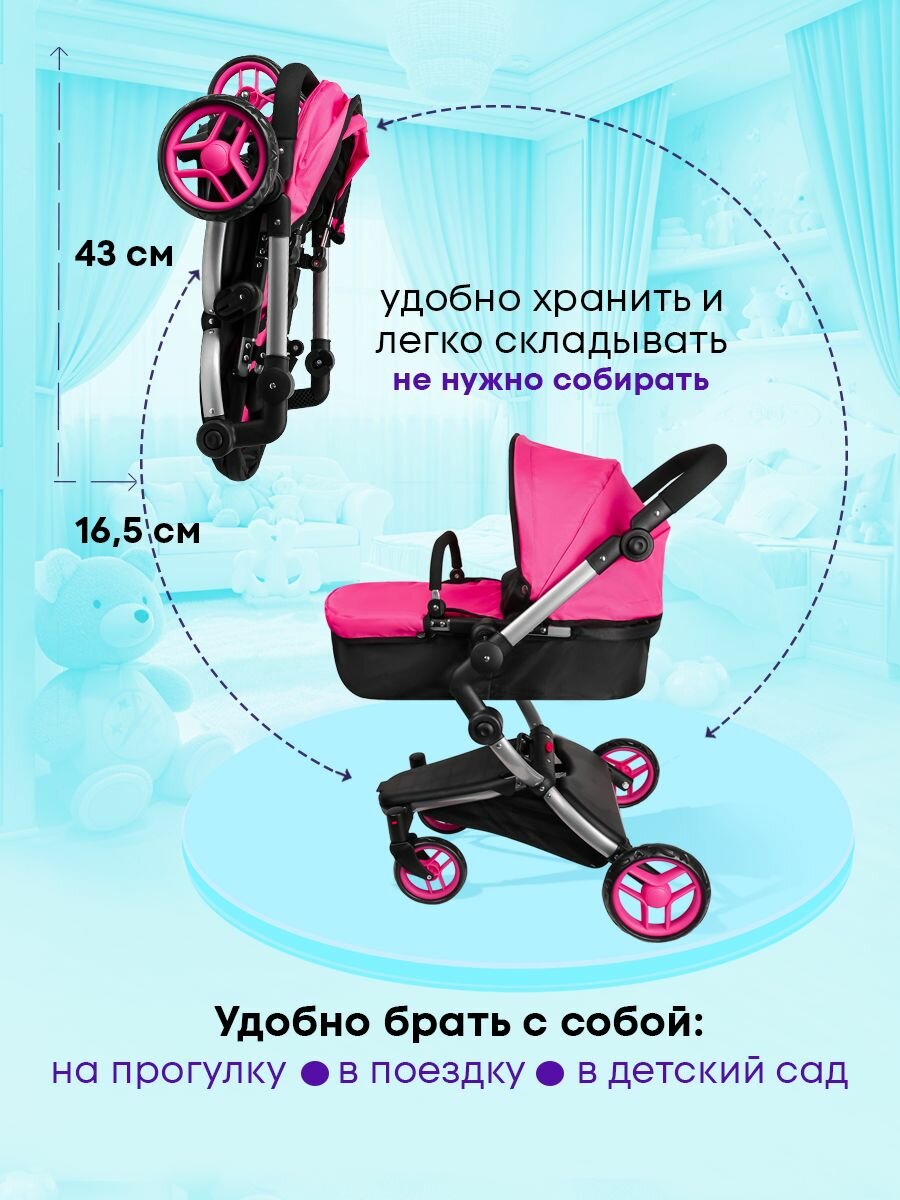 Коляска для кукол до 58 см с люлькой, детская, металлическая. Размер 69х46х72 см. Подарок для девочек 3+ Артикул 9641-A интересное: