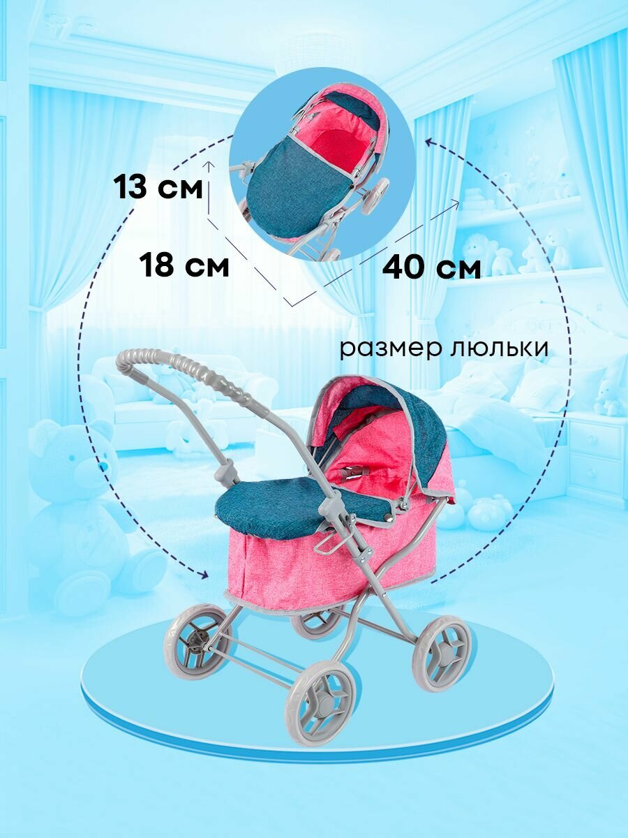 Купить Коляска для кукол до 40 см с люлькой, размер 58х33х55см. Подарок для девочек 3+ Артикул 9325H-A