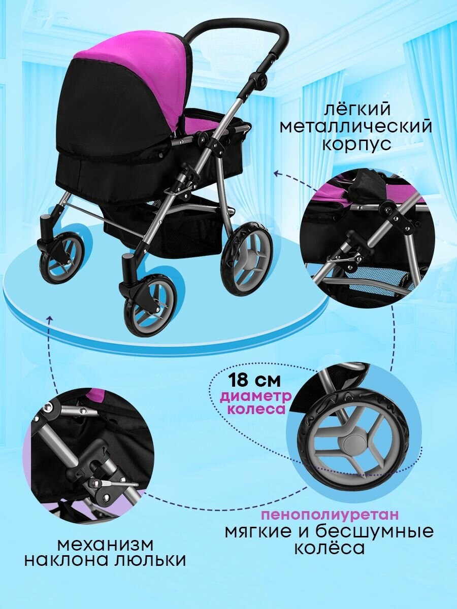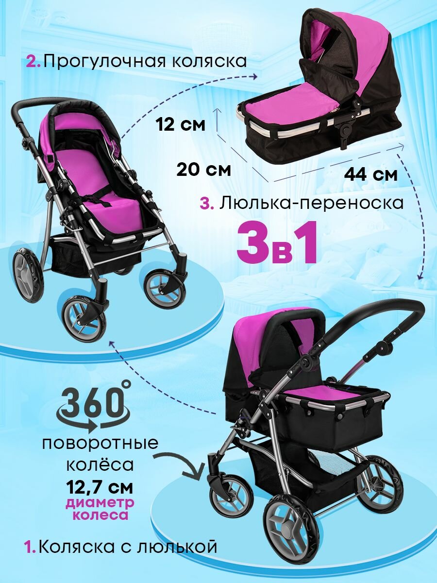 Коляска-трансформер для кукол до 44 см. 3в1 размеры 51х37х61,5см. Подарок для девочек 3+ Артикул 9651BS-B интересное: