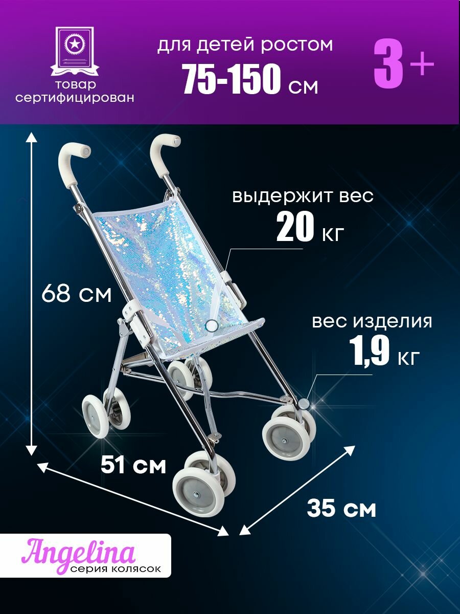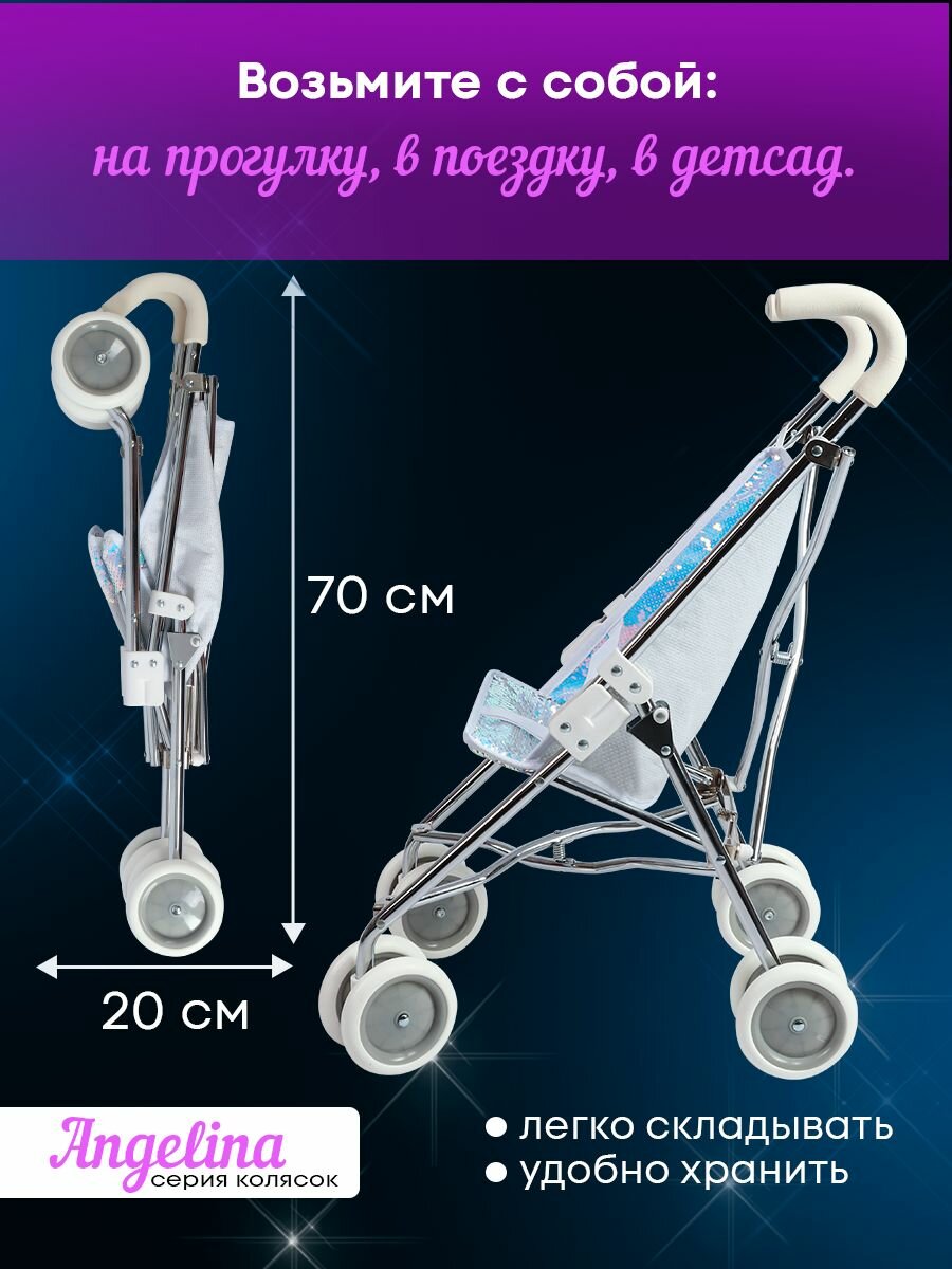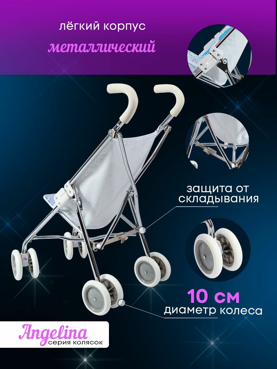 Прогулочная игрушечная коляска для кукол до 46 см. Размеры 51х35х68см. Подарок для девочек 3+ серия ангелина 9364-AL интересное:
