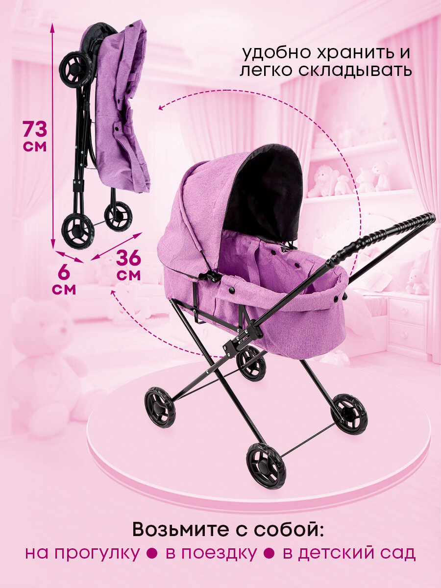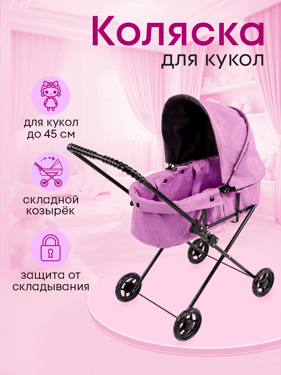 Детская коляска для кукол до 45 см, металлическая, складной козырек. Подарок для девочек интересное: