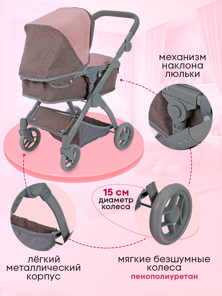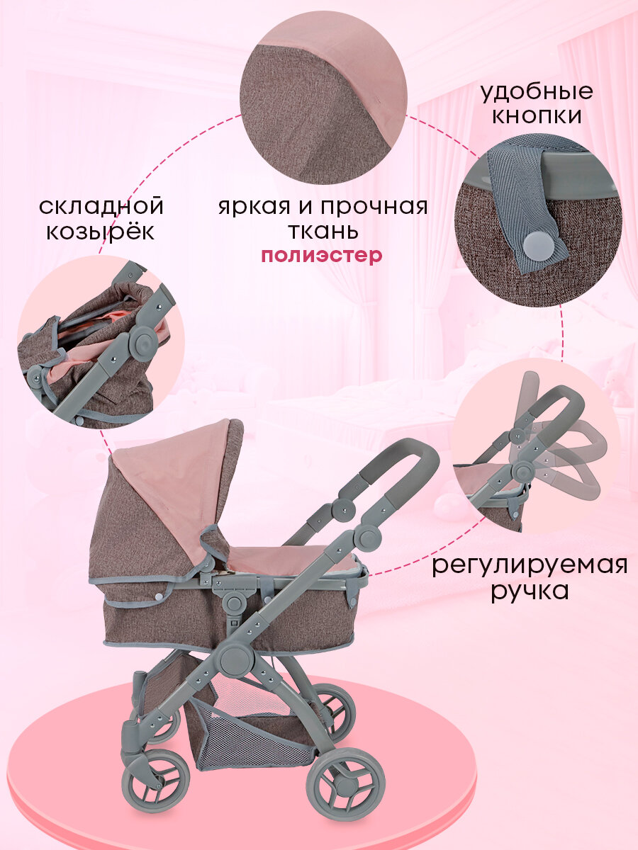 Купить Коляска-трансформер 3в1 для для кукол до 46см, металлическая, складной козырек. Подарок для девочек