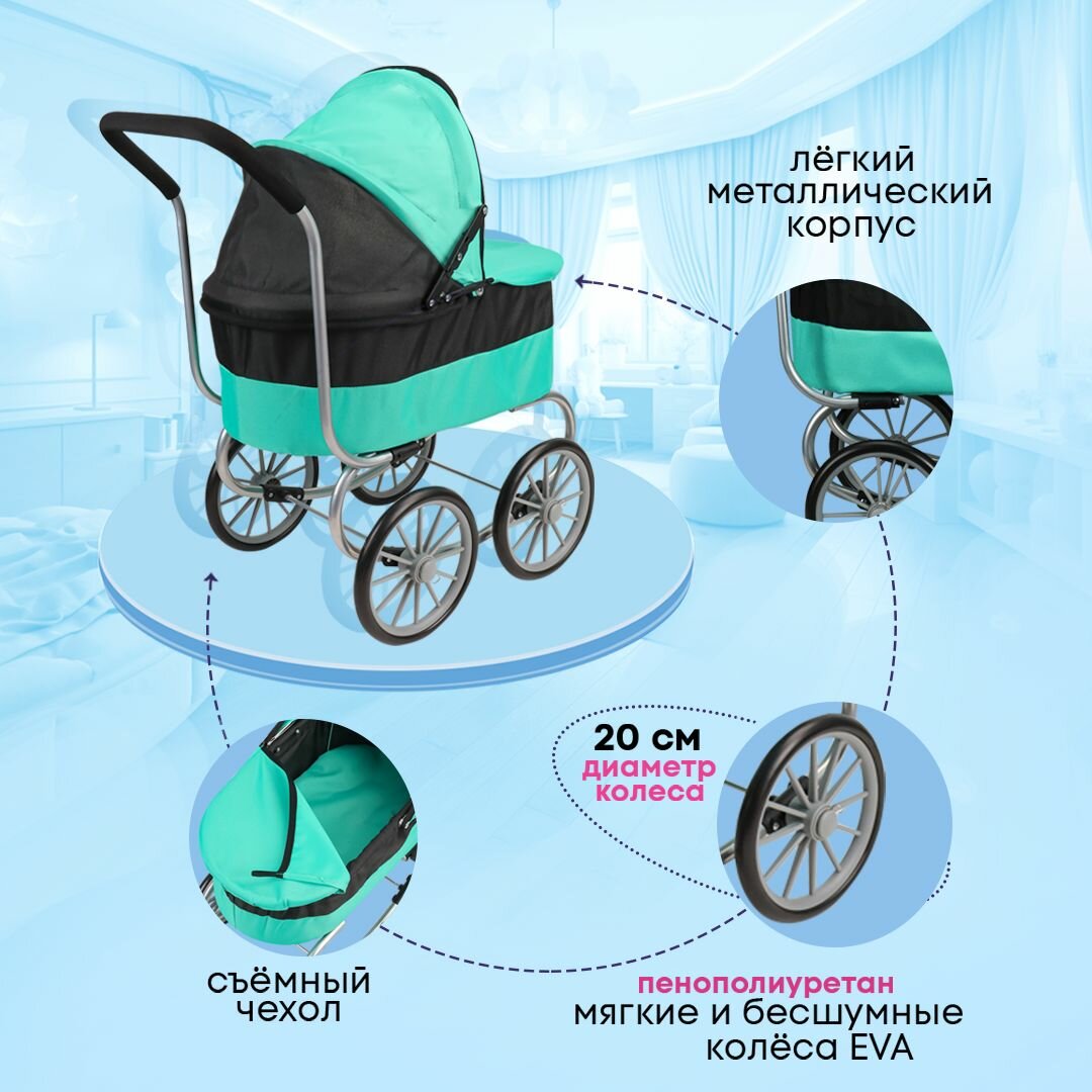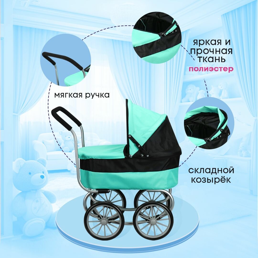 Коляска для кукол до 48 см с люлькой детская, металлическая. Размер 60х32х66 см. Подарок для девочек 3+ Артикул 9678A интересное:
