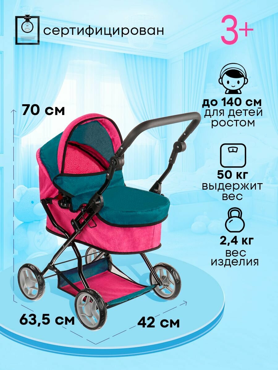 Купить Коляска для кукол до 45 см с люлькой. Размер 70х42х63.5 см. Подарок для девочек 3+ Артикул 9680В